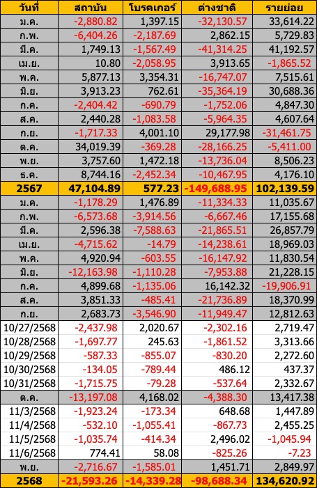 Sinthorn Summary 31/10/2568 : ต่างชาติขายสุทธิ -537.64 ลบ.