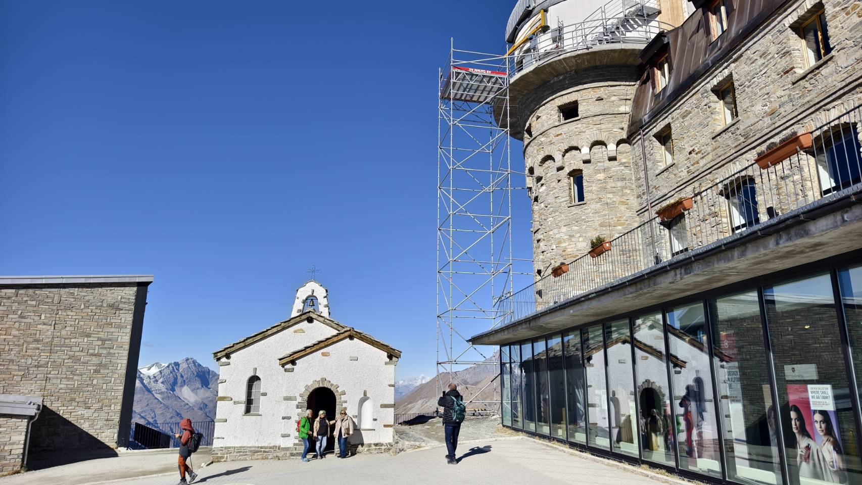 หลัง จากสถานี Roten boden ก็ถึงสถานีสุดท้าย Gornergrat เป็นโรงแรมด้านบน และร้านชายของที่ระลึก นอกจากนี้ยังมีโบสถ์ขนาดเล็กด้านบน ส่วนด้านล่างแสดงให้เห็นถึงความงดงามของธารน้ำแข็งที่ไหลเรียงลงด้านล่างของเขา มีคนเล่น Parachute ไปมา น่าสนุกเลยทีเดียว แค่เดินขึ้นเดินลง ก็เหนือยพอดูหันกลับมาอีกทีก็ราวๆ 5 โมงเย็น ผมอยู่บนนี้ทั้งหมดราว 4ชมกว่า จากที่อ่านดูในเนต ถ้าซื้อตั๋วหลังบ่ายสามจะได้ลดราคาราว 30% นะครับแต่ผมว่า ใช้เวลาด้านบนนี้เต็มๆเวลาเลยดีกว่าครับ มันตื่นเต้นมากๆ แค่นั่งเฉยๆดูวิวก็ฟินมากแล้ว นอกจากนี้ ยิ่งหน้าหนาวยิ่งมืดเร็ว กลางคืนสั้น ถ้าขึ้นมาช้า คงไม่ได้มีโอกาสดีดีแบบนี้