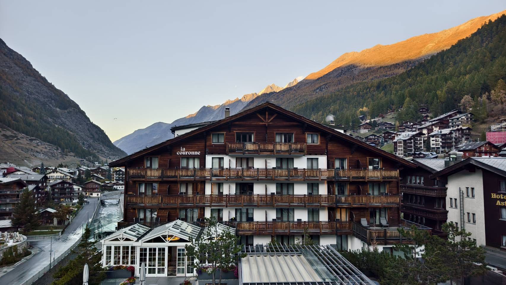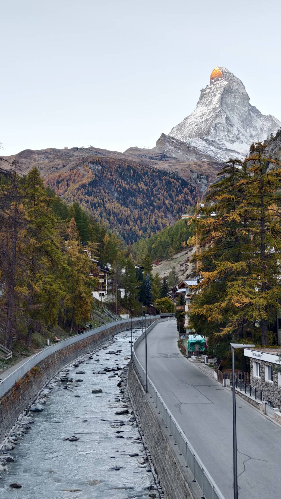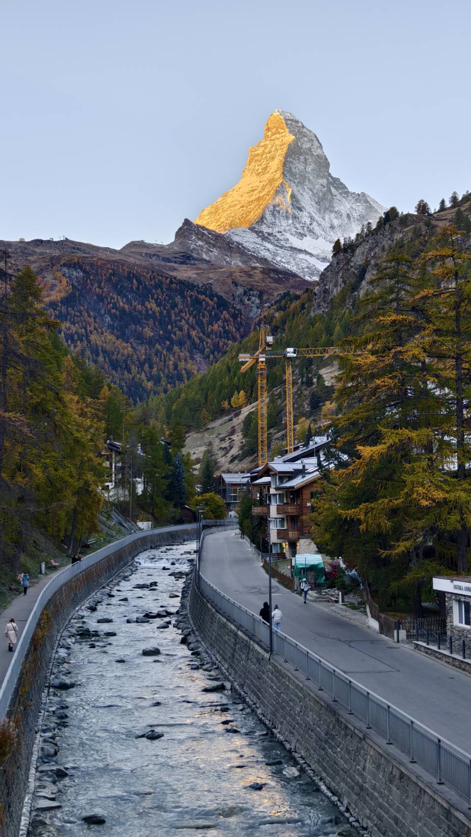พออาหิตย์รุ่งสางออกมารร. ถึงกับตกใจกับมวลชนที่มารอดูแสงยามเช้า โดยเมื่อพระอาทิตย์ขึ้นพ้นขอบเขา จะส่งให้เกิดแสงสีแดงที่ยอดของ Matterhorn และไล่ล่งพาดผ่าน Matterhorn ทำให้ Matterhorn ของเราสุกสว่างเป็นสีทองเลยทีเดียว ถือว่าเป็นเช้าที่สมบูรณ์แบบมากๆ