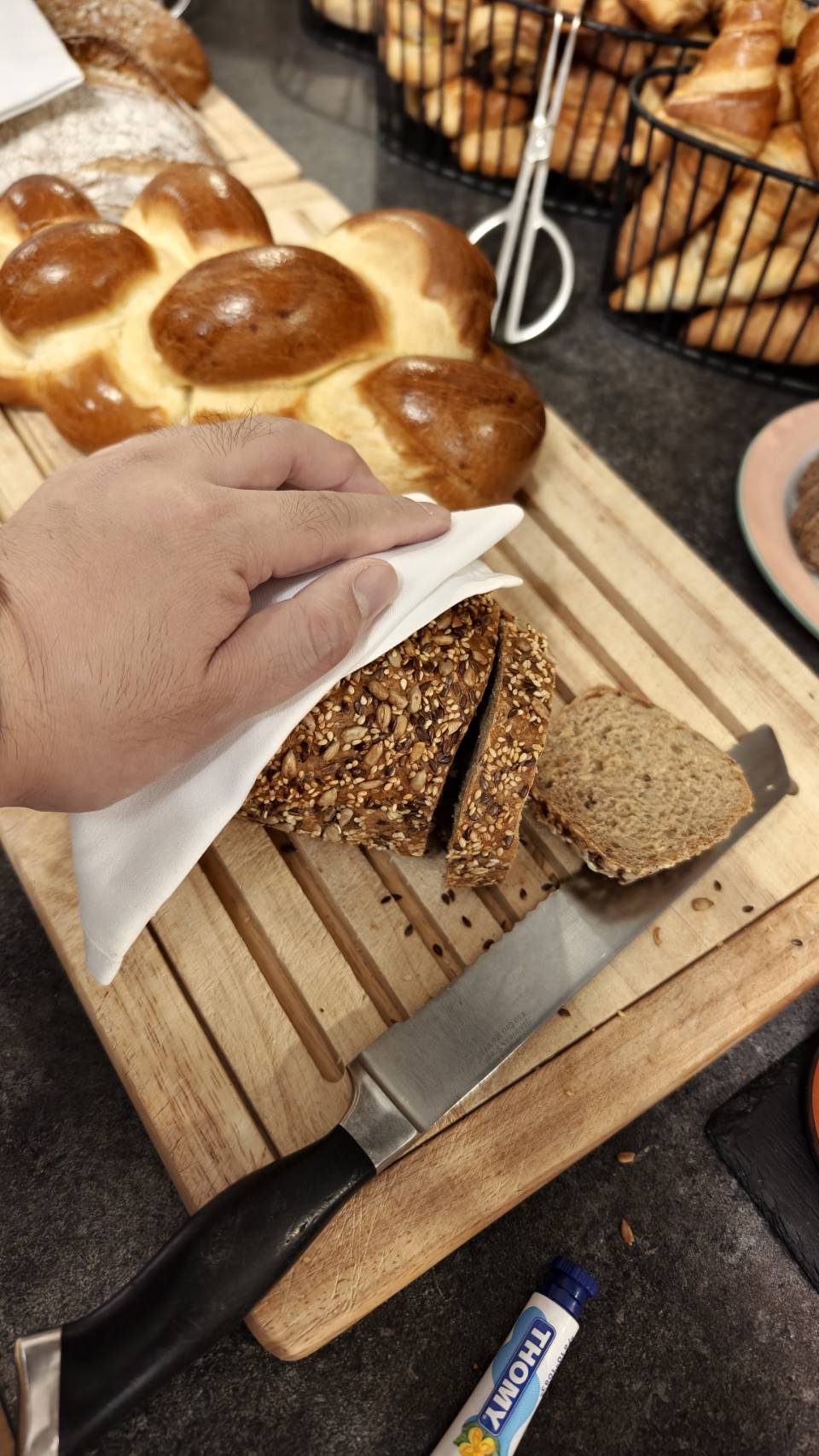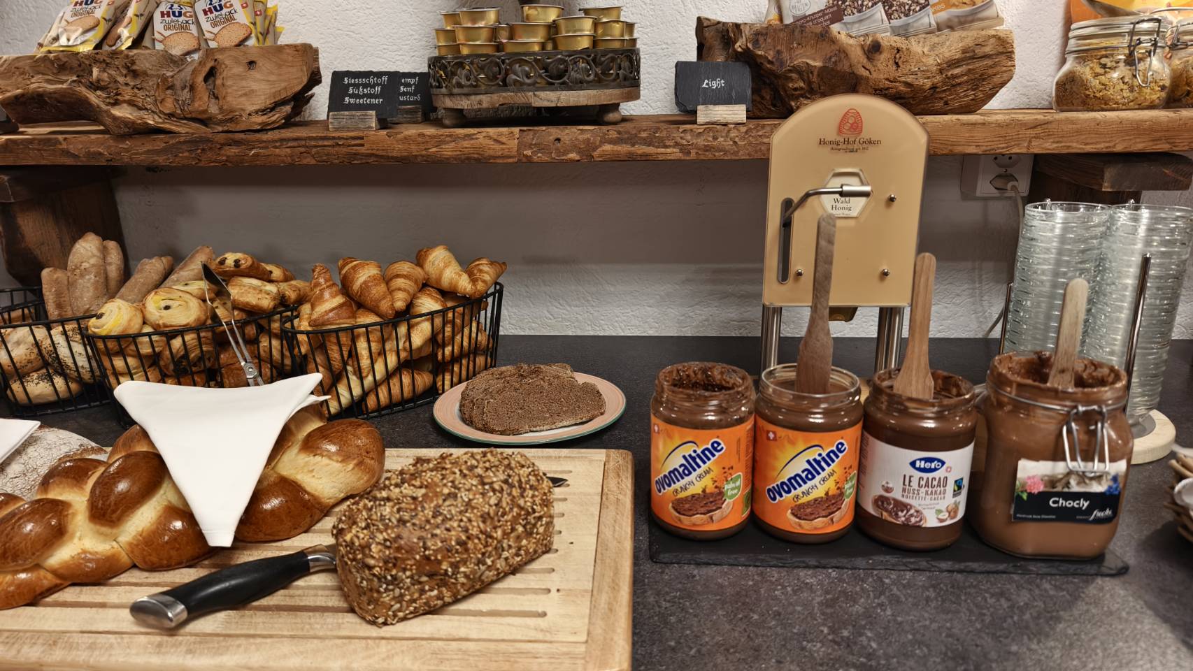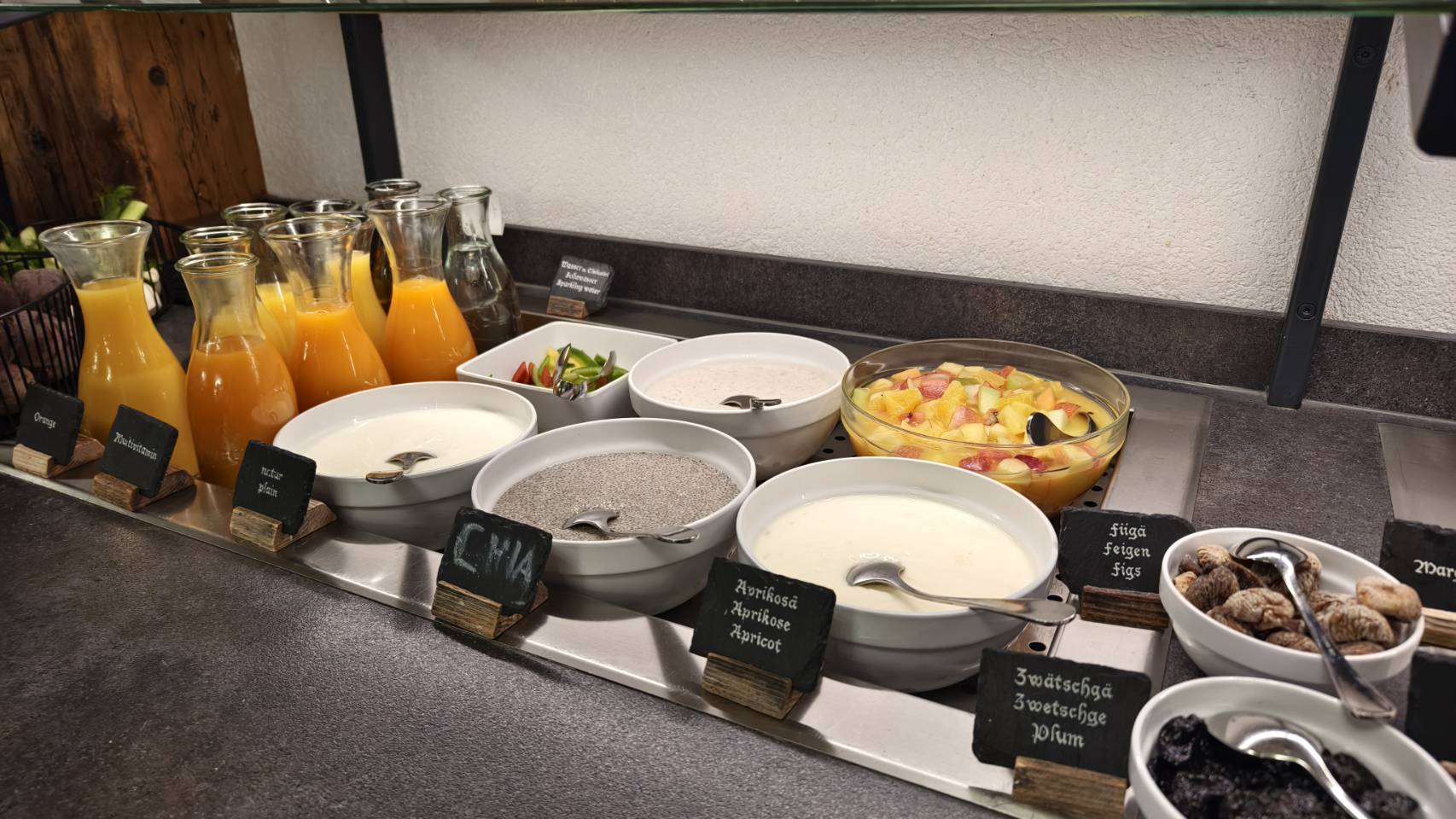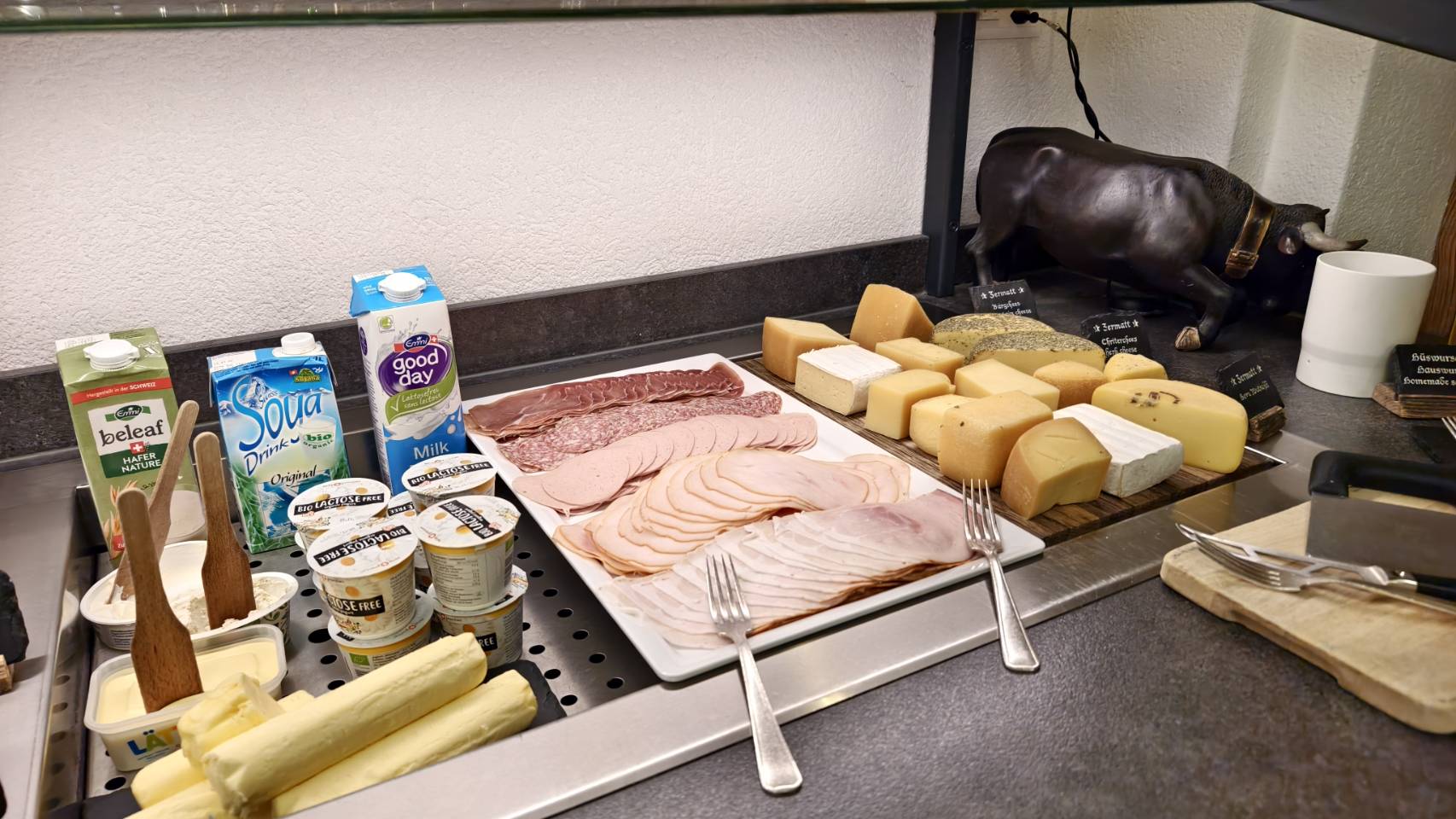 เช้าตื่นมาอาหารทางโรงแรมดีมากมี่โซน Cold cut และ ชีส ขอบอกที่ว่าชีสที่สวิสอร่อยจริงคับ อยากซื้อกลับมาก นอกจากนี้มีโซนให้เราทำ ไข่ดาวหรือไ่ข่คนเอง ทำวาฟเฟิ้ลหรือแพนเค้กเองได้ ถือว่าสนุกสนานใช้ได้เลย
