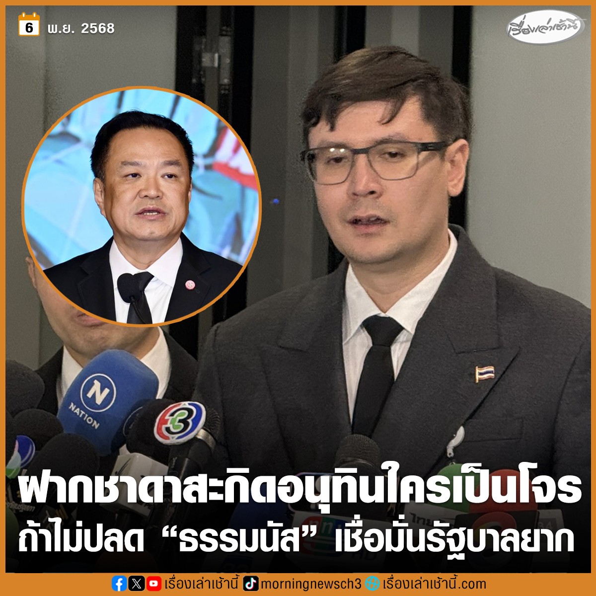 ดังนั้นเราก็เห็นรูปแบบถึงการพึ่งพาช่วยเหลือซึ่งกันและกัน ระหว่างนายเบน สมิธ กับร้อยเอก ธรรมนัส และร้อยเอกธรรมนัสคือคนที่ทั้งโลก สงสัยอยู่ว่าเกี่ยวข้องกับสแกมเมอร์ ถ้านายกฯจะมาอุ้มชูร้อยเอก ธรรมนัส แบบนี้ตนรับไม่ได้ เรื่องนี้น่าผิดหวัง ถ้าจะมาปกป้องร้อยเอก ธรรมนัส กันแบบนี้และตนก็อยากให้นายชาดา ไทยเศรษฐ์ สส.อุทัยธานี พรรคภูมิใจไทย ช่วยบอกนายกรัฐมนตรีหน่อยว่า ตกลงใครเป็นโจร ช่วยไปชี้ให้หน่อย เพราะท่านชาดารู้ดีว่าใครเป็นใคร
