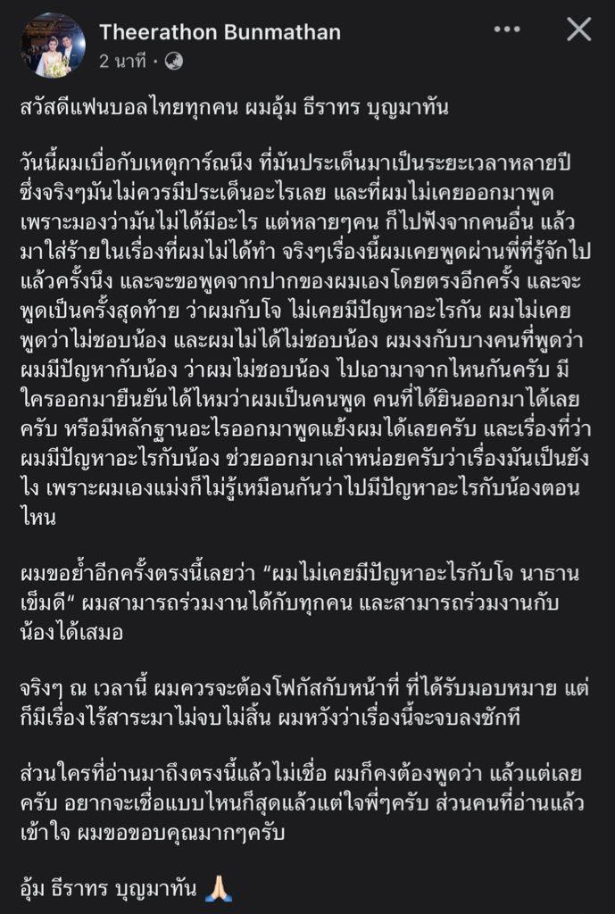 อุ้ม ธีราทร โพสต์แบบชัดเจน เรื่องโจนาธาร