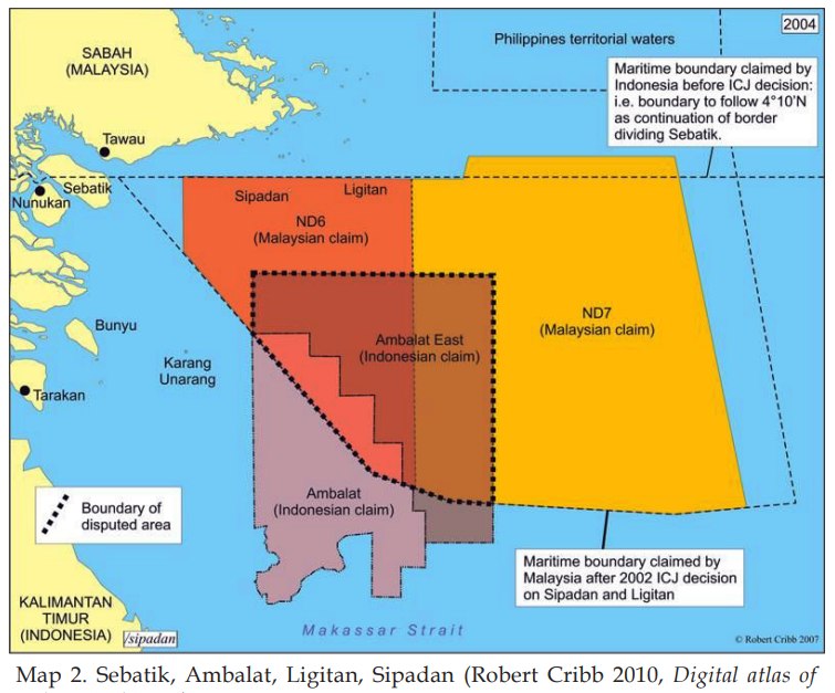 ในปี 1969 ได้มีข้อพิพาทเหนือหมู่เกาะ ‘ซีปาดัน’และ ‘ลีกิตตัน’ ซึ่งเป็นเกาะเล็ก ๆ ในน่านน้ำใกล้พื้นที่ชายฝั่งทะเลของรัฐซาบาห์ ประเทศมาเลเซีย และจังหวัดกาลิมันตันตะวันออก ประเทศอินโดนีเซีย