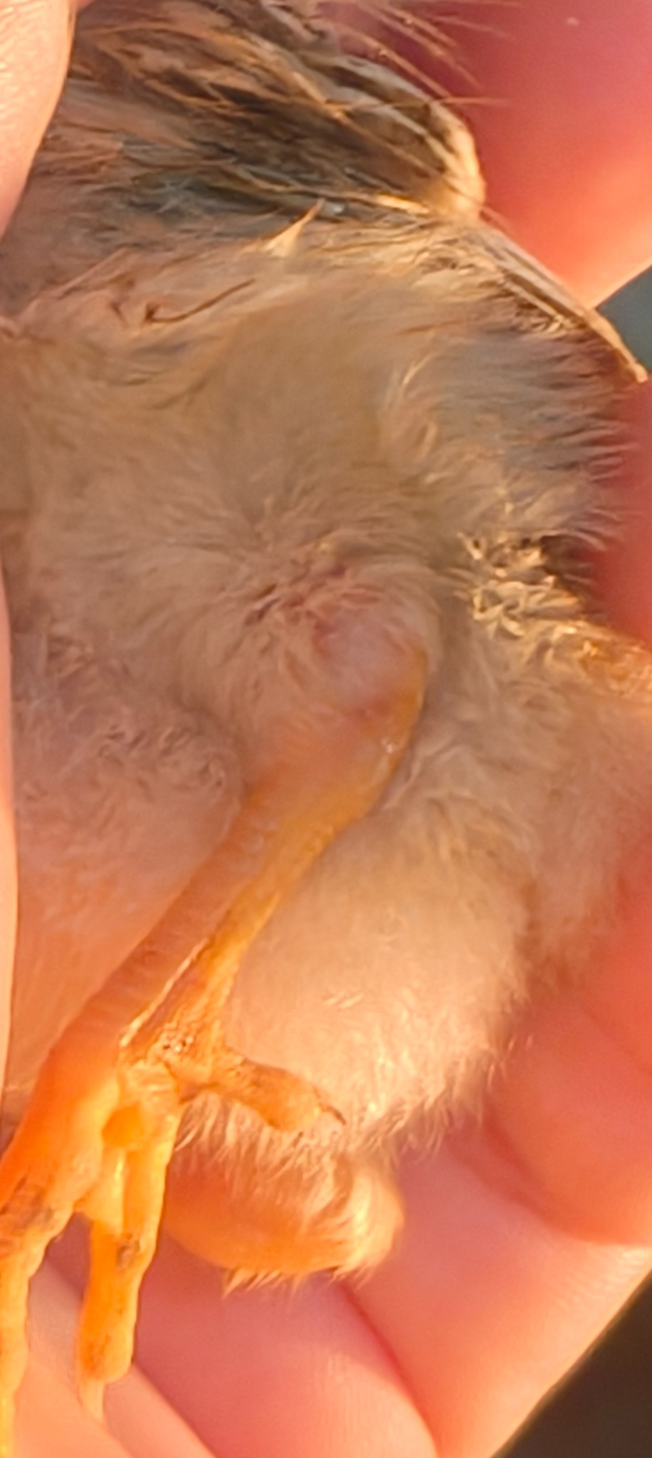 ไปเจอลูกเจี๊ยบมา 2 ตัวค่ะ ตัวเเรก น้องร้องอยู่หลังบ้าน สภาพที่ไปเห็นคือ น้องติดอยู่ในยางรถที่มีน้ำขังอยู่ตัวเดียวค่ะ เลยช่วยออกมาเเละเป่าลมอุ่นให้เเห้งเเละกกไว้ ต◌ัวที่สองไปเจออยู่ในรังค่ะ เหมือนเเม่น้องจะไม่เอาเเล้ว เเถมเปียกฝนอีก เเต่ตัวที่สองยังเด็กกว่าตัวเเรกค่ะ เเละน้องนิสัยร่าเริงฤดี กินเป็นกินเก่งกว่าตัวพี่ 2-3 วันเเรกที่เจอยังดีๆอยู่ค่ะ เเต่พอมาอีกวันตัวพี่มีอาการเจ็บขา 1 ข้าง เเละเดินไม่สะดวก เวลากินข้าวก็จะนั่งกินเอา เเละกินข้าวกินน้ำได้ปกติค่ะ ซึมๆนิดหน่อย เวลานอนน้องจะหายใจถี่ เเละปีกตก เวลาเดินก็จะใช้ปีกพยุงช่วย เเละ 2 วันมาเเล้วขาก็ยังไม่หายเจ็บ ไม่มีบาดแผล เเต่ตรงข้อขาบวมเเดงค่ะ อยากจะขอความช่วยเหลือให้คนที่รู้หรือเคยเห็น หรือพบเจอมา ช่วยบอกเเละเเนะนำหน่อยได้ไหมคะ ว่าน้องเป็นอ่ะไร จะช่วยรักษาอย่างไร