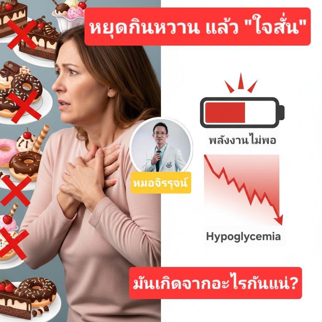 *** หยุดกินหวานแล้วทำไมถึง “ใจสั่น เหงื่อออก มือสั่น”?*** ♥️