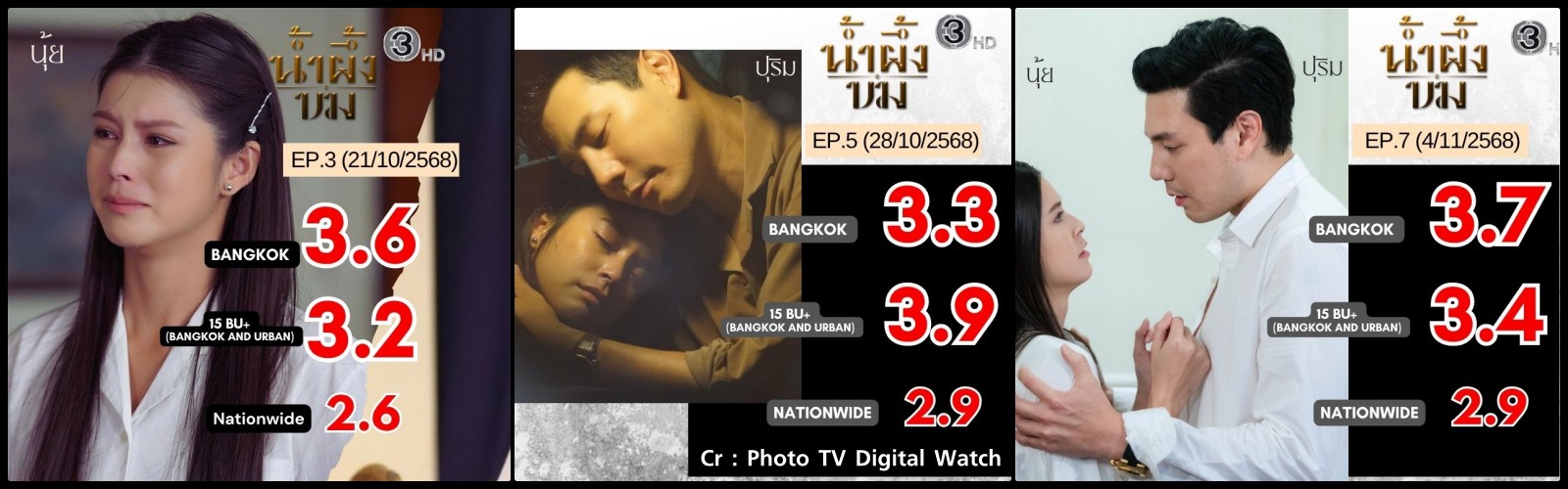เรตติ้ง ละครน้ำผิ้งขม 3 ตอน เรตติ้งกำลังดี