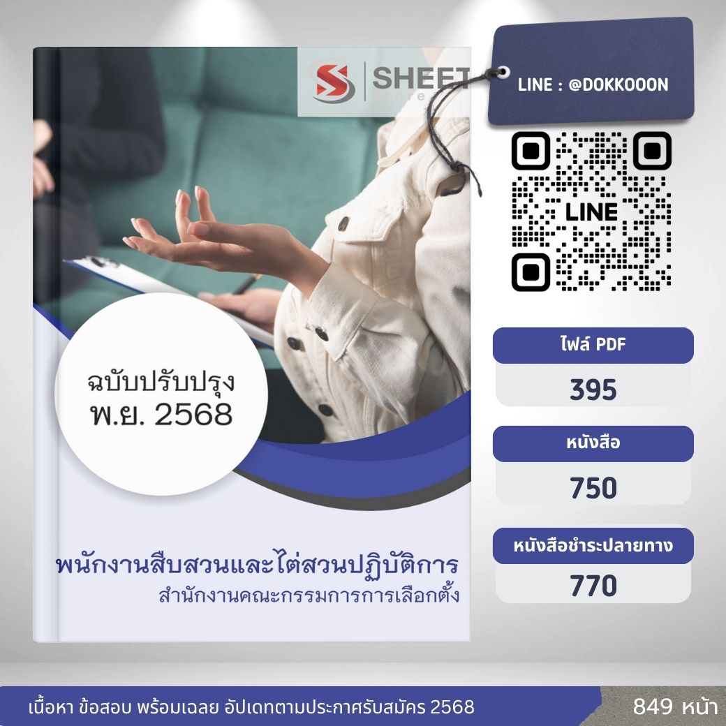 แนวข้อสอบ พนักงานสืบสวนและไต่สวนปฏิบัติการ สำนักงานคณะกรรมการการเลือกตั้ง กกต. อัปเดตตามประกาศรับสมัครสำนักงาน กกต. พฤศจิกายน 2568 สรุปเนื้อหา ตัวอย่างข้อสอบ พร้อมเฉลย เนื้อหากระชับตรงประเด็นเข้าใจง่าย มีให้เลือกทั้งในรูปแบบไฟล์ PDF 395 ดาวน์โหลดได้ทุกที่ ทุกเวลา ไม่หมดอายุ และรูปเล่มหนังสือฟรีค่าจัดส่ง ฟรี!ไฟล์เสียงเทคนิคการสอบสัมภาษณ์งานราชการ