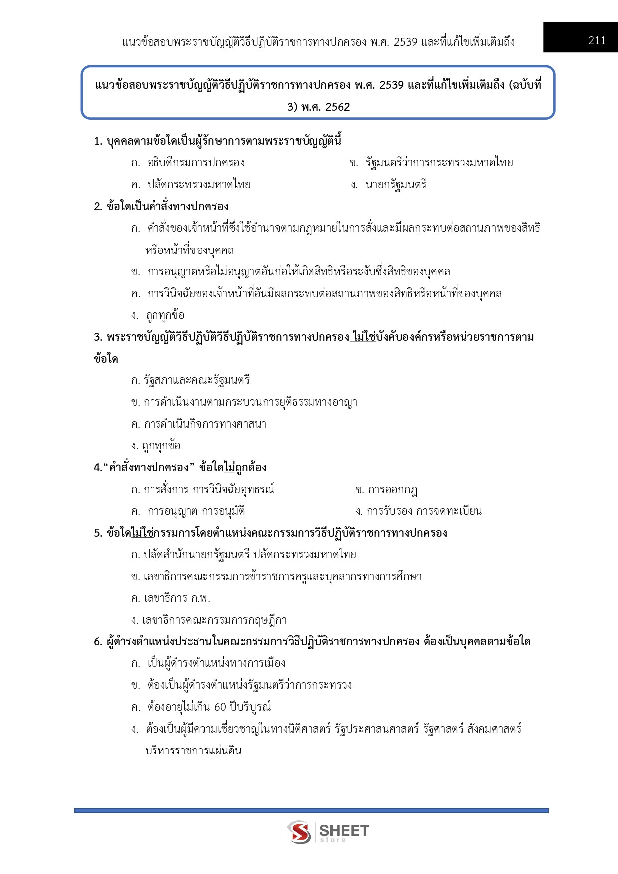 - แนวข้อสอบสรุปสาระสำคัญพระราชบัญญัติวิธีปฏิบัติราชการทางปกครอง พ.ศ. 2539 และแก้ไขเพิ่มเติมถึง (ฉบับที่ 3) พ.ศ. 2562