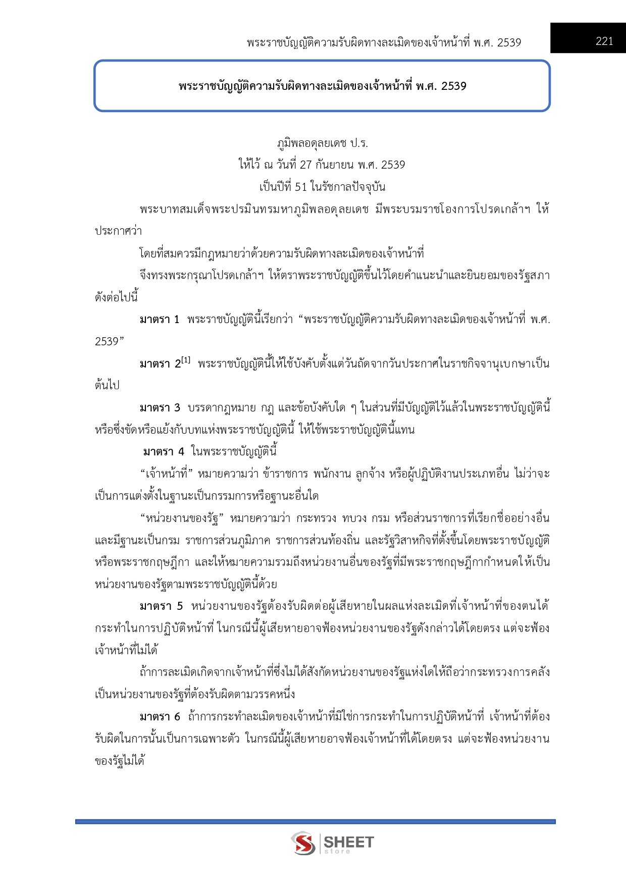 - พระราชบัญญัติความรับผิดทางละเมิดของเจ้าหน้าที่ พ.ศ. 2539