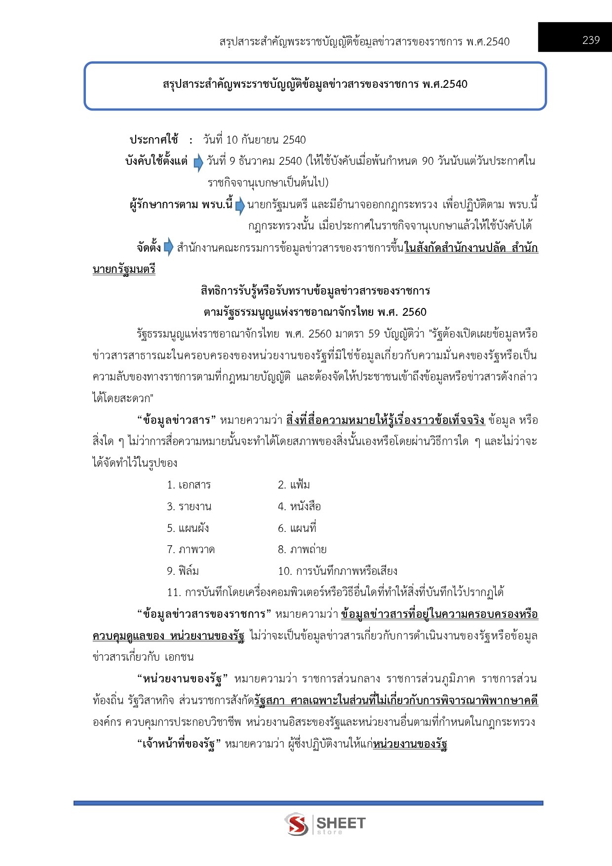- แนวข้อสอบสรุปสาระสำคัญพระราชบัญญัติข้อมูลข่าวสารของราชการ พ.ศ. 2540