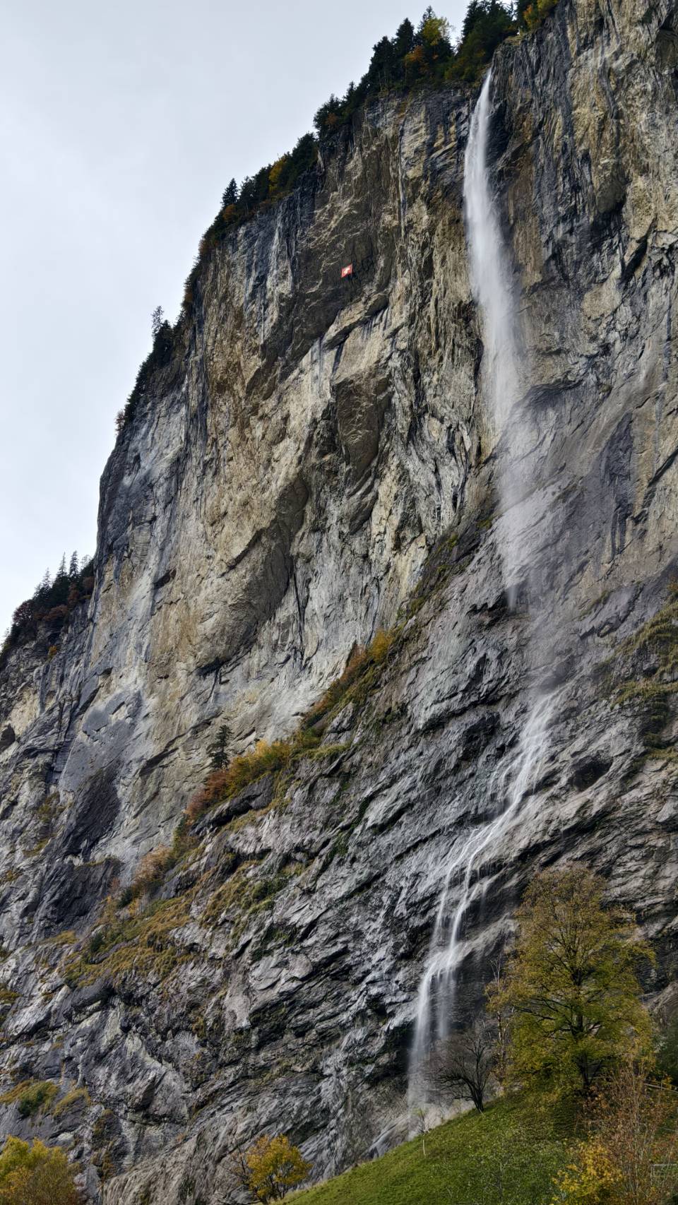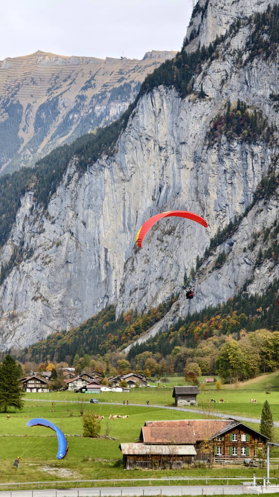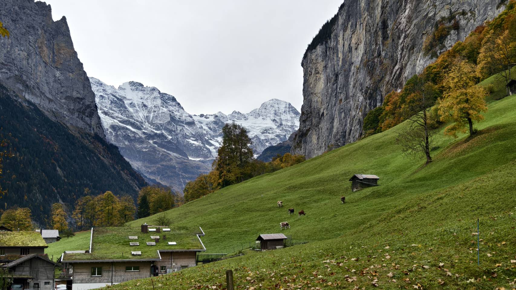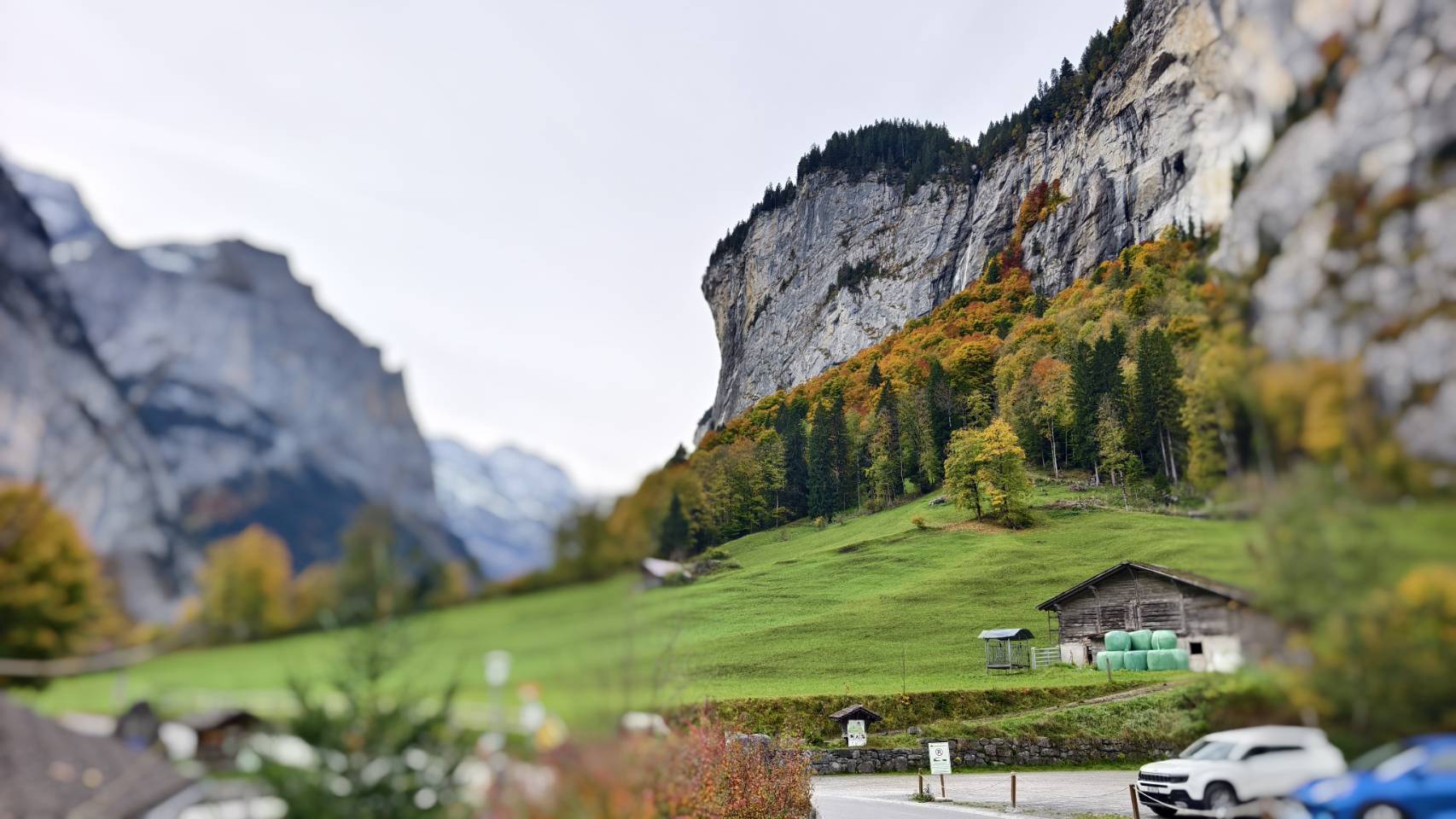 วันนี้ผมเลือกไป Lautenbrunen หมู่บ้านสวยท่ามกลางหุบเขาและหน้าผา ที่โดดเด่นมากๆ ก็คือน้ำตกที่ไหลลงจากยอดเขานั่นเอง สำหรับชื่อของหมู่บ้านเลาเทอร์บรุนเนิน มีความหมายว่า "many fountains" เนื่องจากเป็นหมู่บ้านที่มีน้ำตกน้อยใหญ่ถึง 72 แห่ง โดยเมื่อเดินเข้าไปจะพบน้ำตก Staubbach น้ำตกที่สูงที่ในหมู่บ้านกับความสูง 300 เมตร เมื่อเราเดินเข้าไปยังหมู่บ้านจะได้ยินเสียงน้ำตก รวมถึงมองเห็นสายน้ำได้จากระยะไกลเลยทีเดียว บรรยากาศของใบไม้เปลี่ยนสี ทุ่งหญ้าสีเขียว และเทือกเขาด้านหลังที่ปกคลุมด้วยหิมะก็สวยงามยากที่จะบรรยายแล้วครับ ไม่รวมน้องวัวที่เพิ่มองค์ประกอบให้ภาพที่ตาเห็นมีชีวิตชีวายิ่งนัก โชคดีมากครับที่ภาพส่งกลิ่นไม่ได้เพราะน้องวัวก็นำมาด้วยมูลวัวส่งกลิ่นตลบอบอวลมากมายเวลาเดินผ่าน