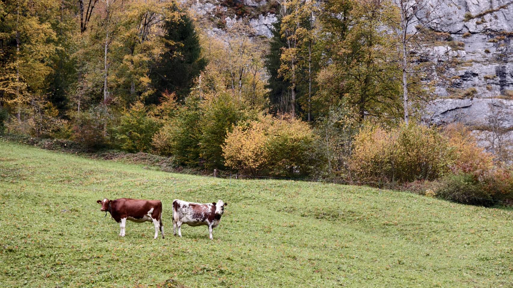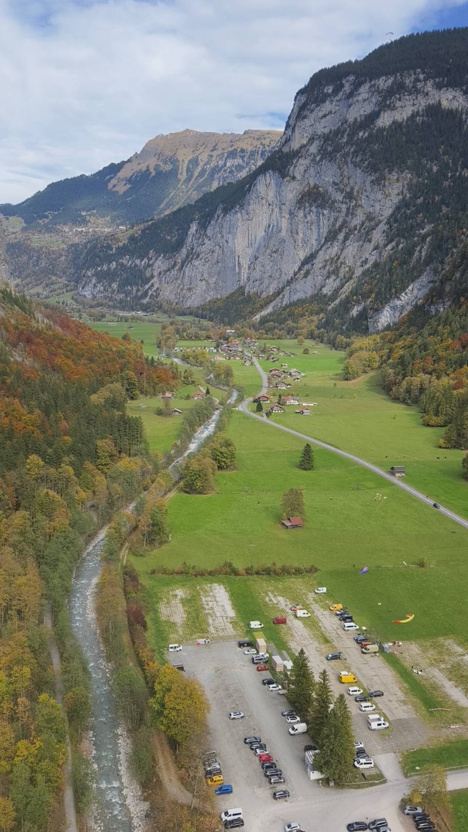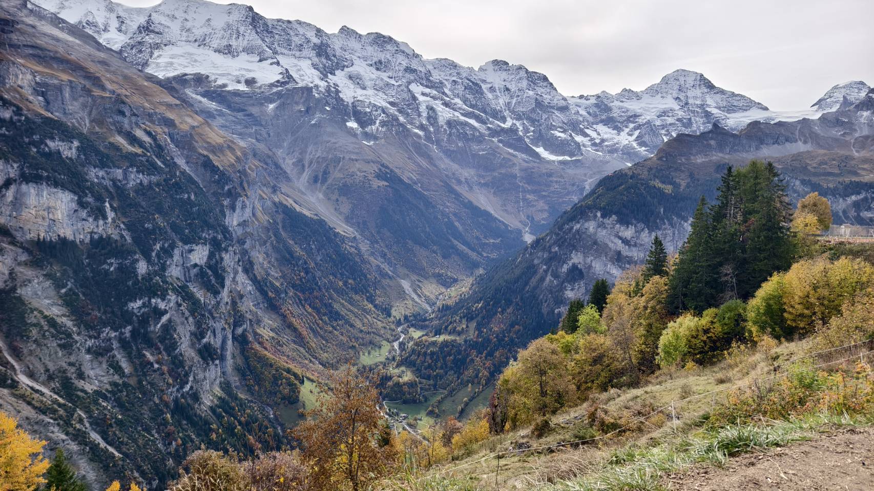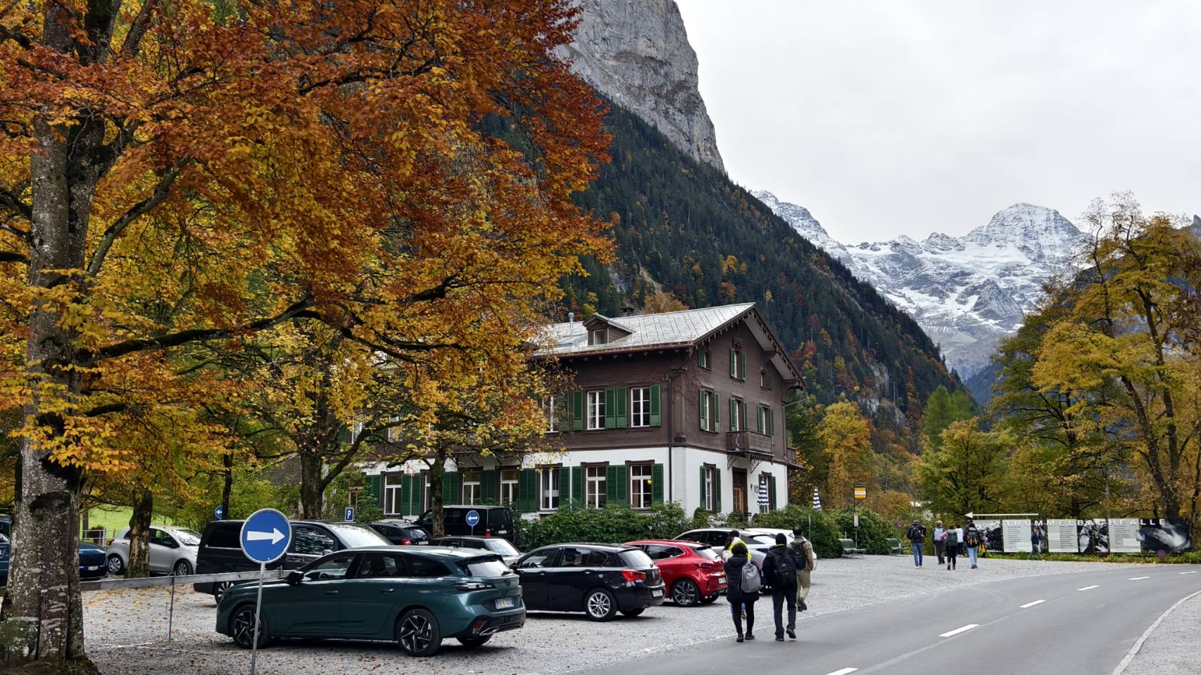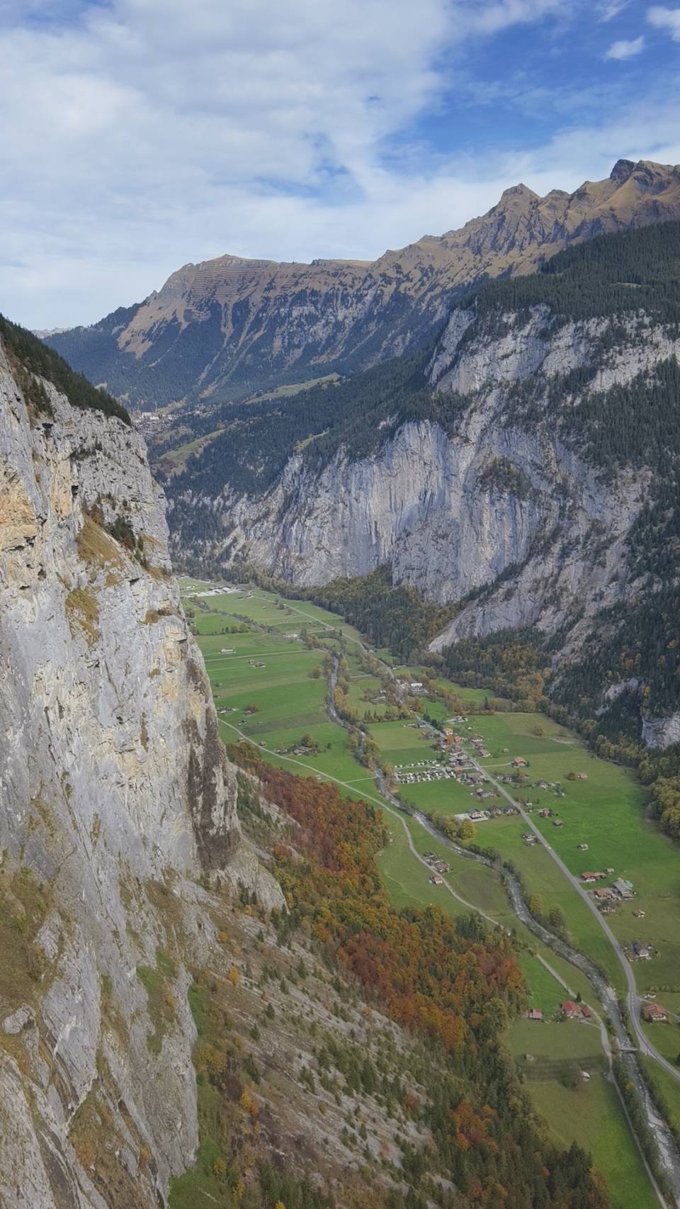 วันนี้ผมเลือกไป Lautenbrunen หมู่บ้านสวยท่ามกลางหุบเขาและหน้าผา ที่โดดเด่นมากๆ ก็คือน้ำตกที่ไหลลงจากยอดเขานั่นเอง สำหรับชื่อของหมู่บ้านเลาเทอร์บรุนเนิน มีความหมายว่า "many fountains" เนื่องจากเป็นหมู่บ้านที่มีน้ำตกน้อยใหญ่ถึง 72 แห่ง โดยเมื่อเดินเข้าไปจะพบน้ำตก Staubbach น้ำตกที่สูงที่ในหมู่บ้านกับความสูง 300 เมตร เมื่อเราเดินเข้าไปยังหมู่บ้านจะได้ยินเสียงน้ำตก รวมถึงมองเห็นสายน้ำได้จากระยะไกลเลยทีเดียว บรรยากาศของใบไม้เปลี่ยนสี ทุ่งหญ้าสีเขียว และเทือกเขาด้านหลังที่ปกคลุมด้วยหิมะก็สวยงามยากที่จะบรรยายแล้วครับ ไม่รวมน้องวัวที่เพิ่มองค์ประกอบให้ภาพที่ตาเห็นมีชีวิตชีวายิ่งนัก โชคดีมากครับที่ภาพส่งกลิ่นไม่ได้เพราะน้องวัวก็นำมาด้วยมูลวัวส่งกลิ่นตลบอบอวลมากมายเวลาเดินผ่าน