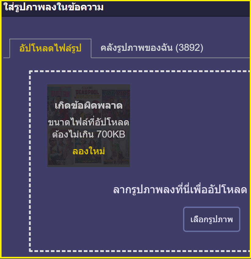 เว็บพันทิป ผมจำได้ว่าประมาณสัก 2 - 3 ปีที่แล้วได้เคยมีการปรับปรุงให้ใส่รูปภาพได้เกิน 700 KB แล้วใช่ไหมครับ แต่เมื่อครู่นี้ลองใส่ภาพขนาด 842 KB ปรากฏขึ้นแบบนี้ครับ ไม่ทราบท่านใดเคยเป็นบ้างในช่วงนี้