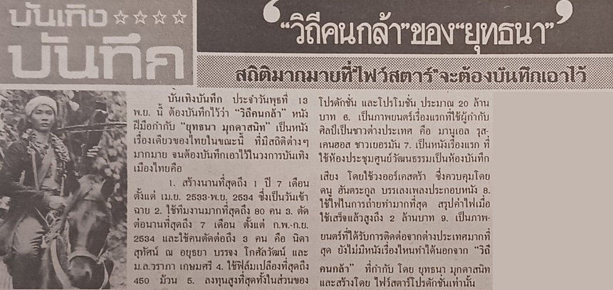 *เป็นผลงานกำกับเรื่องสุดท้ายของยุทธนากับไฟว์สตาร์ เพราะถัดจากนั้นอีก 4 ปี ได้มีผลงานกับแกรมมี่ฟิล์ม ด้วยเรื่อง "คู่กรรม"
