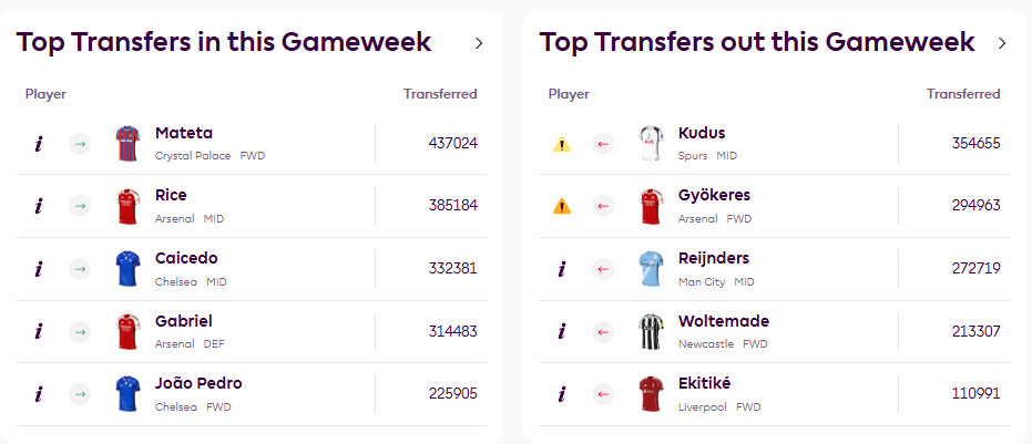 สถิติในการเปลี่ยนตัวเข้า และออก ของวีคนี้