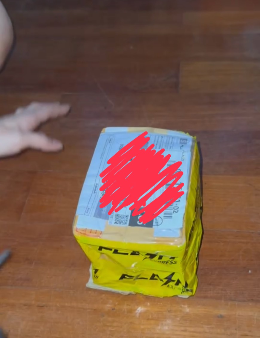 พอลูกค้าได้รับ ก็รีบส่งรูปกับวิดีโอมาให้ กระปุกบุบเสียหายหนักมากจนเหมือนรถทับ กล่องพัสดุของเรามีเทปของยี่ห้อขนส่งพันไว้รอบกล่อง