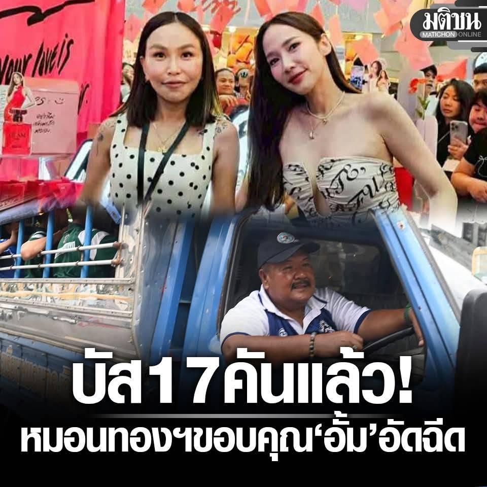 ล่าสุด เพจ ชมรมฟุตบอลศิษย์โรงเรียนหมอนทองวิทยา จ.ฉะเชิงเทรา ยังได้โพสต์ขอบคุณ อั้ม พัชราภา นางเอกซุป’ตาร์ และ ทราย มาดามฟิน ทางเพจยังโพสต์อีกว่า “อัพเดด ตอนนี้มี 17 บัสแล้ว ยังไม่เปิดให้จ