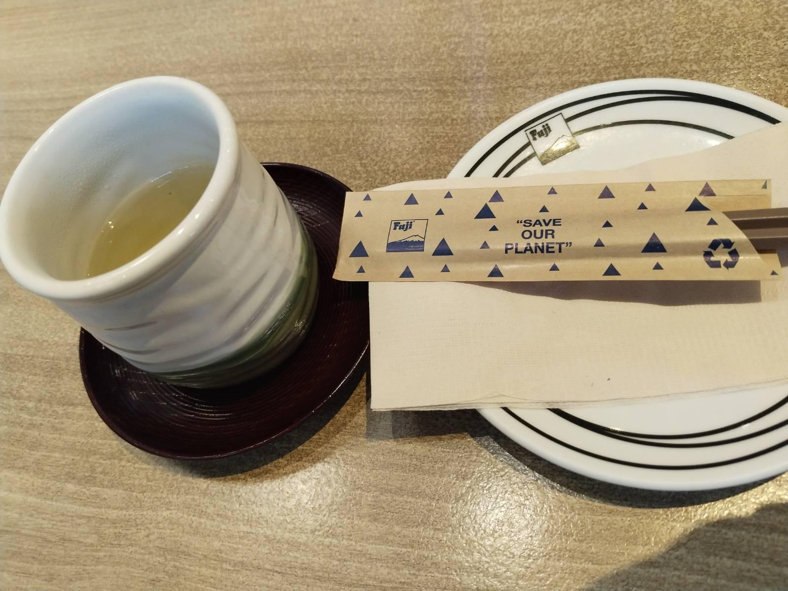 ในชุดอาหารมีข้าว ผักดองเป็น ฟุกุชินสึเกะ ซุปมิโซะ น้ำจิ้มเทมปุระ