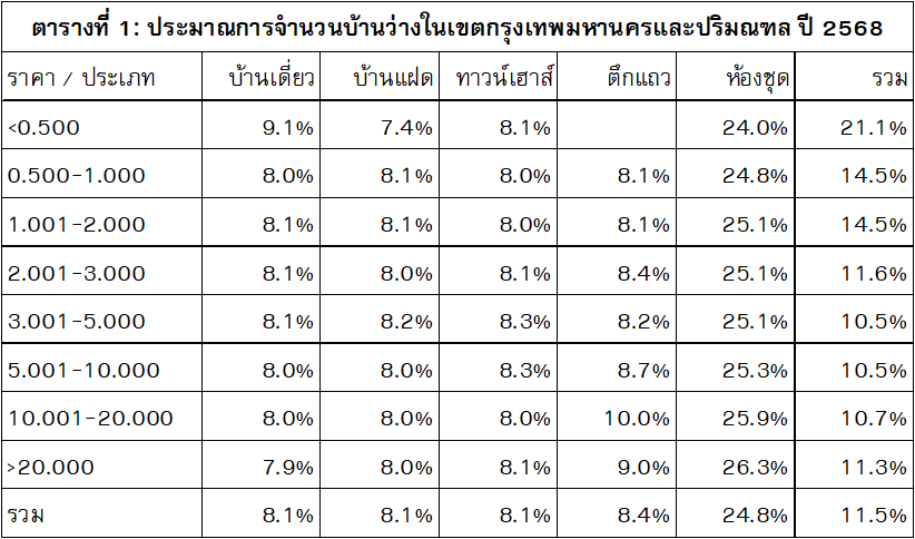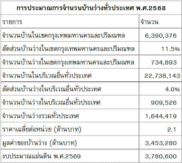 รายงานการประมาณการ “บ้านว่าง” ในประเทศไทย พ.ศ.2568