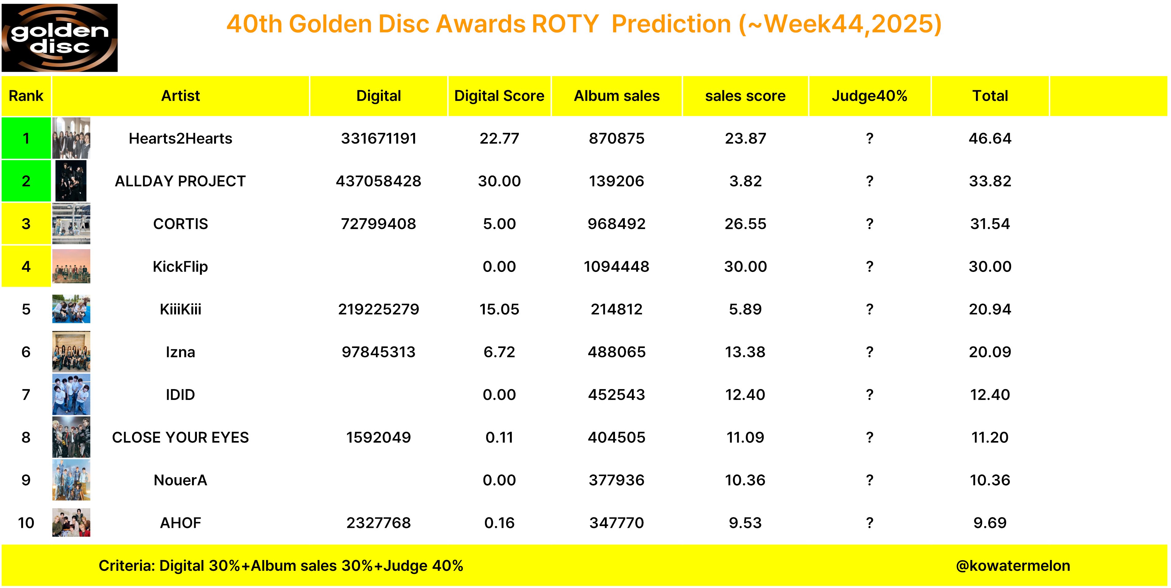 ผลคะแนนล่าสุดคาดการณ์รางวัล Rookie Of The Year จากงาน 40th Golden Disc Awards