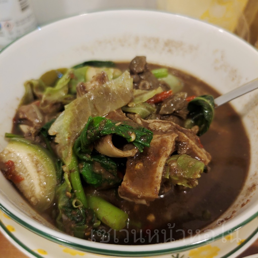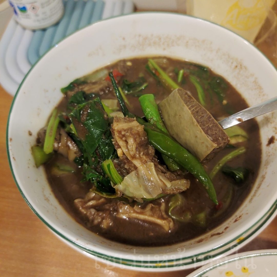 แต่ก็อร่อยเข้มข้นดีนะครับ ผักที่ใส่มาเปื่อย กินง่าย เนื้อและเครื่องในชิ้นใหญ่ๆให้มาเยอะพอสมควร