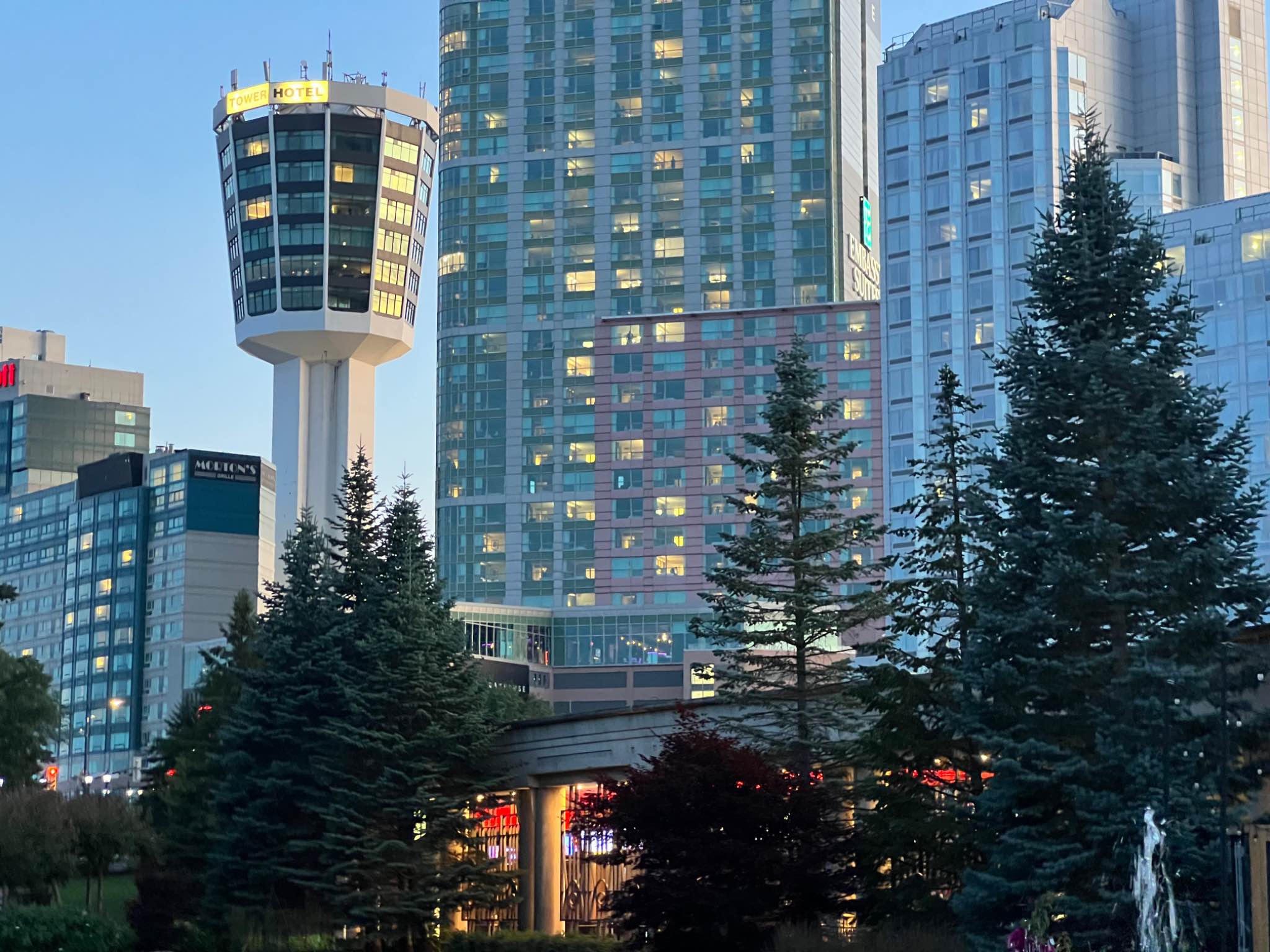 เดี๋ยวพรุ่งนี้มีทัวร์ที่จองไว้ เพื่อนั่งเรือฝั่งแคนาดาใกล้ชิดกับน้ำตก แต่วันนี้ลงไปเดินเล่นชมเมืองก่อน