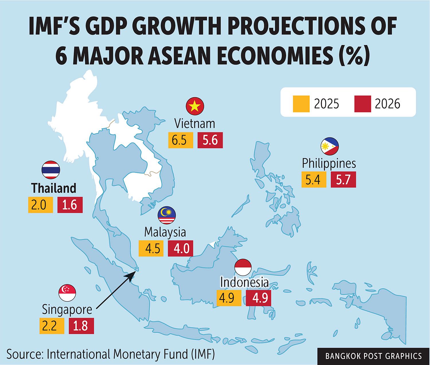 เศรษฐกิจไทยเติบโตช้า รั้งท้ายกลุ่มประเทศ Association of Southeast Asian Nations (ASEAN) โดยมีอัตราการขยายตัวต่ำเมื่อเทียบกับประเทศเพื่อนบ้าน เช่น เวียดนาม อินโดนีเซีย ฯลฯ