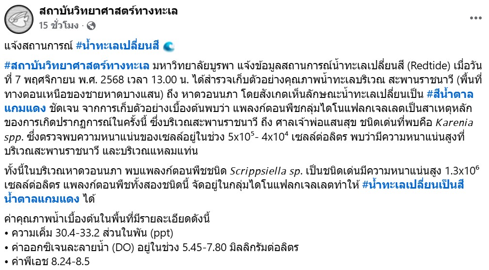บางแสน หาดวอนนภา น้ำทะเลเปลี่ยนสีเพราะอะไร จะเปลี่ยนสีนานไหม เล่นน้ำได้หรือไม่