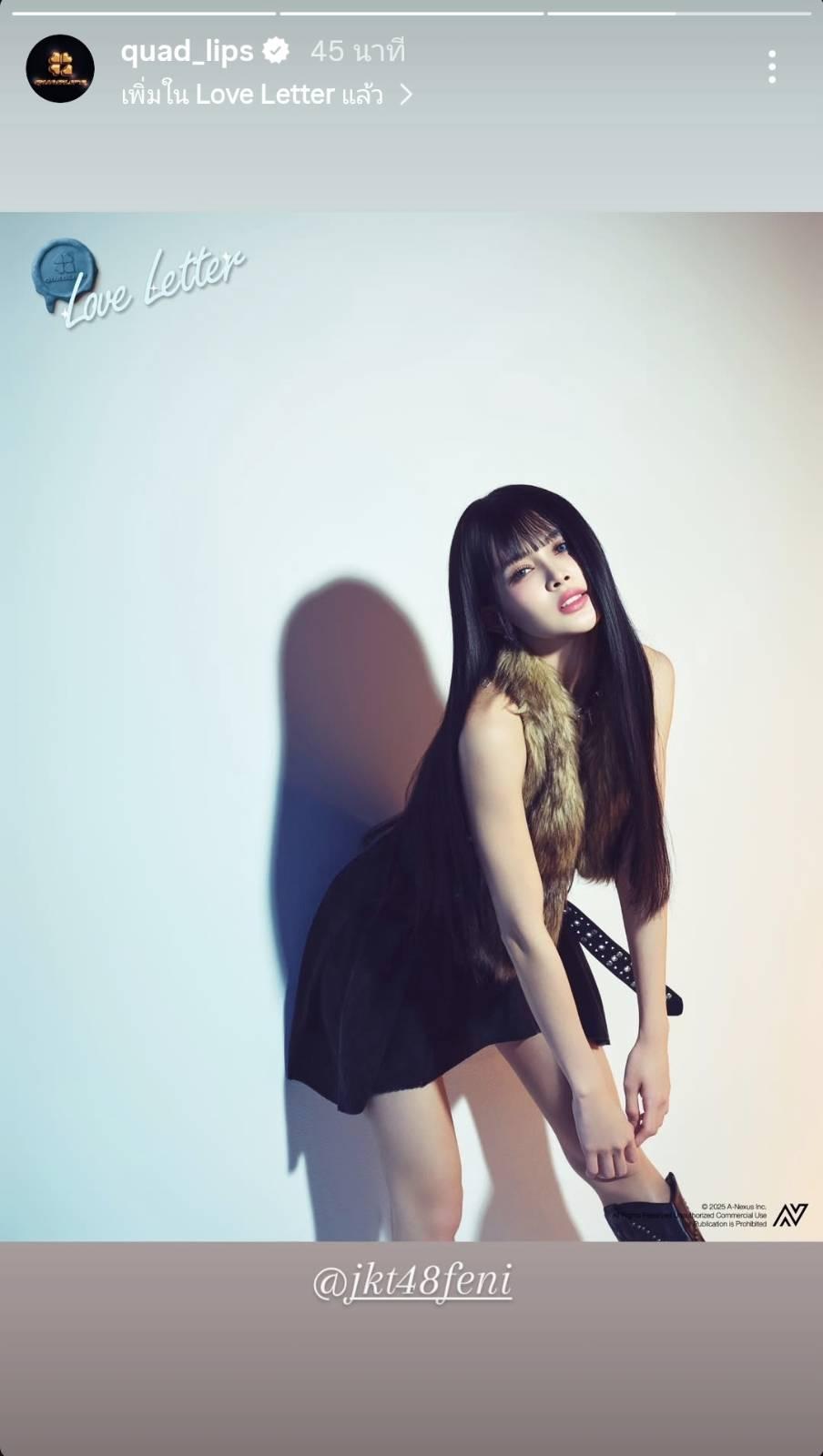 ปล. เนื่องจากวงมีการเปลี่ยนแปลงสมาชิกและเพื่อป้องกันปัญหาเกี่ยวกับชื่อแท็กในอนาคต จึงขอแจ้งทีมงานพิจารณาเปลี่ยนชื่อแท็กจาก "QUADLIPS (BNK48/JKT48/MNL48/SKE48)" มาเป็น "QUADLIPS (นักร้องนักดนตรี)" ครับ