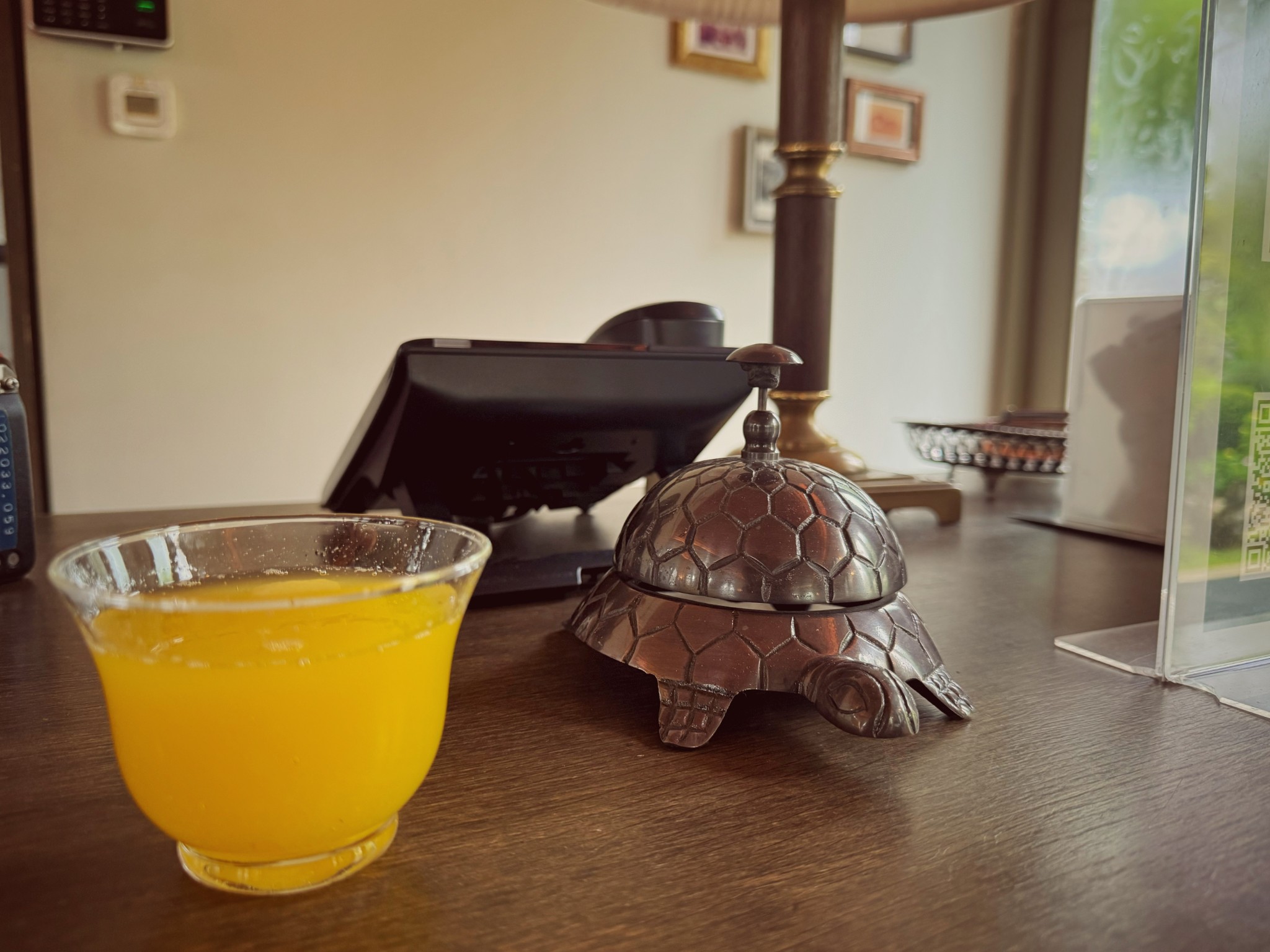 วันนี้ห้องที่เราพักชื่อว่าห้อง "เต่าตนุ" ซึ่งแต่ละห้องก็จะมีชื่อเรียกเป็นชื่อเต่าที่ต่างกันออกไป ระหว่าทางที่เดินมาห้องก็ดูร่มรื่นตลอด ดูแล้วเหมาะกับการพักผ่อนตามแบบที่เราชอบ คือความร่มรื่น เป็นธรรมชาติ และเงียบสงบ