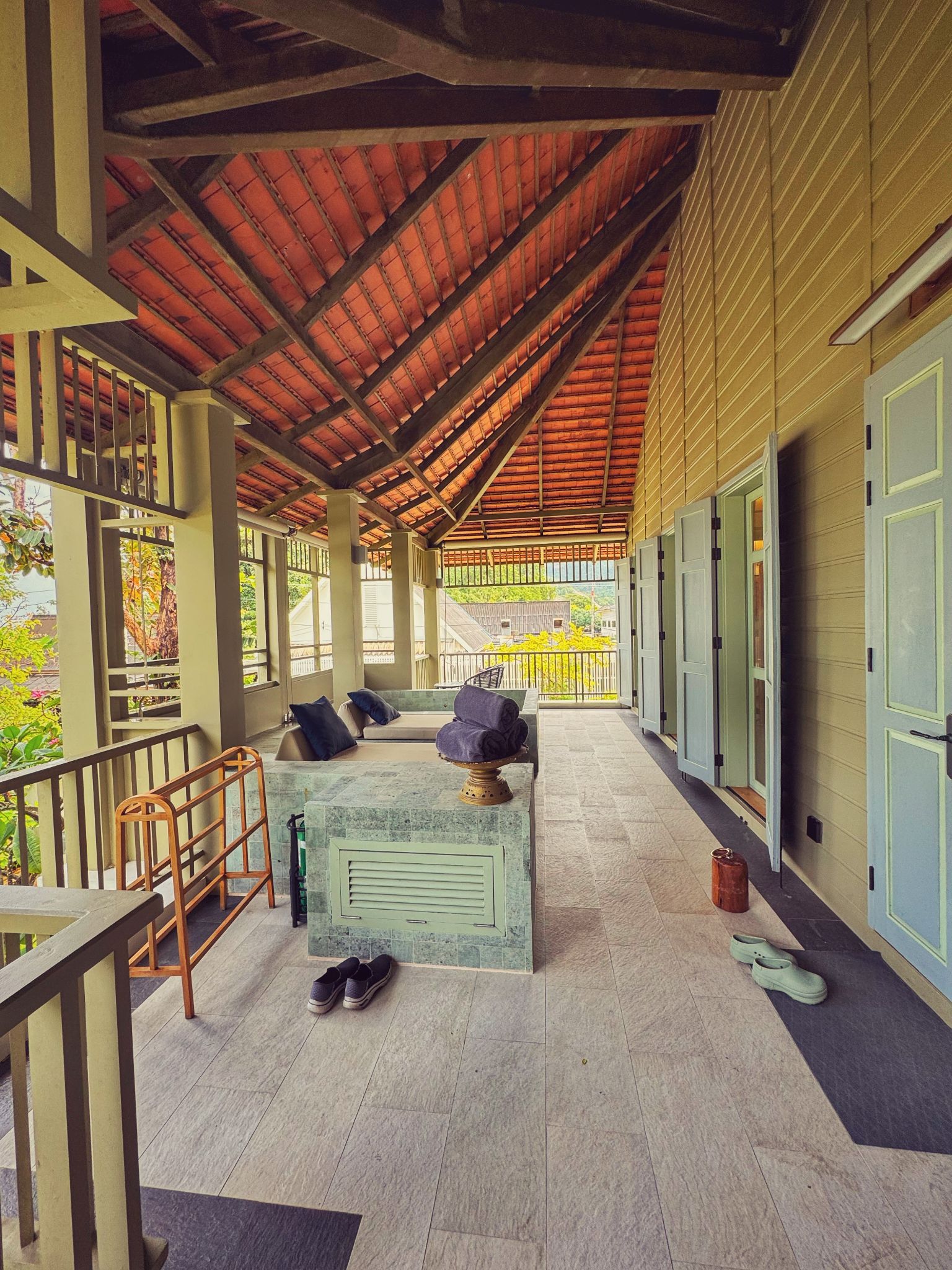 ระเบียงหน้าห้อง มีอ่างน้ำให้แช่ด้วย