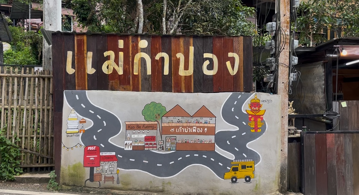 มาถึงปุ๊บ ท้องร้องปั๊บ 555 เราตรงไปที่ร้านดังของแม่กำปองคือ “ข้าวซอยกรอยใจ” ร้านบ้านไม้ที่คนแน่นแทบทุกโต๊ะ เมนูเยอะจนเลือกไม่ถูก มีทั้งข้าวซอยน้ำ / ข้าวซอยแห้ง / ไส้อั่ว / ข้าวผัด / ข้าวจี่ /ข้าวปุกงา และเมนูที่ชื่อแปลกแต่ชวนลองมาก คือ “ชายอดน้ำค้าง” พอได้ลองสั่งปรากฏว่าทุกจานอร่อยหมด! โดยเฉพาะข้าวซอยแบบดั้งเดิม น้ำซุปมีความหอมเครื่องแกง เข้มข้น ส่วนข้าวซอยแห้งก็เผ็ดกำลังดี ไส้อั่วคือเด็ดแบบต้องซื้อกลับบ้าน นอกจากนี้ยังมีชายอดน้ำค้างที่ดื่มแล้วรู้สึกสดชื่น เหมือนนั่งอยู่ในป่าแล้วจิบชาเบา ๆ เราใช้เวลานั่งกินคุยกันประมาณ 40 นาที ก่อนที่จะเดินเล่นที่แม่กำปองรอรถจากที่พักมารับ
