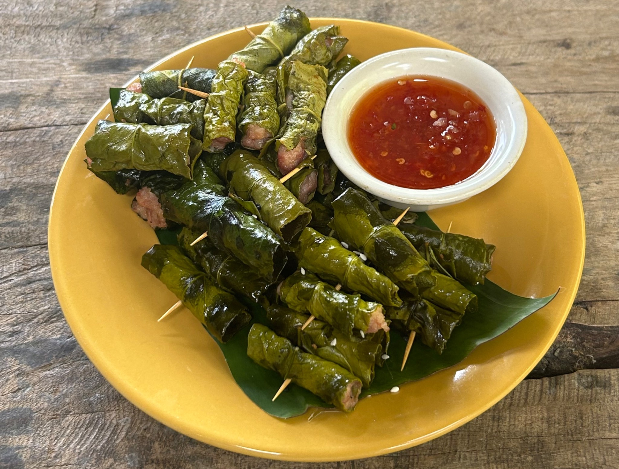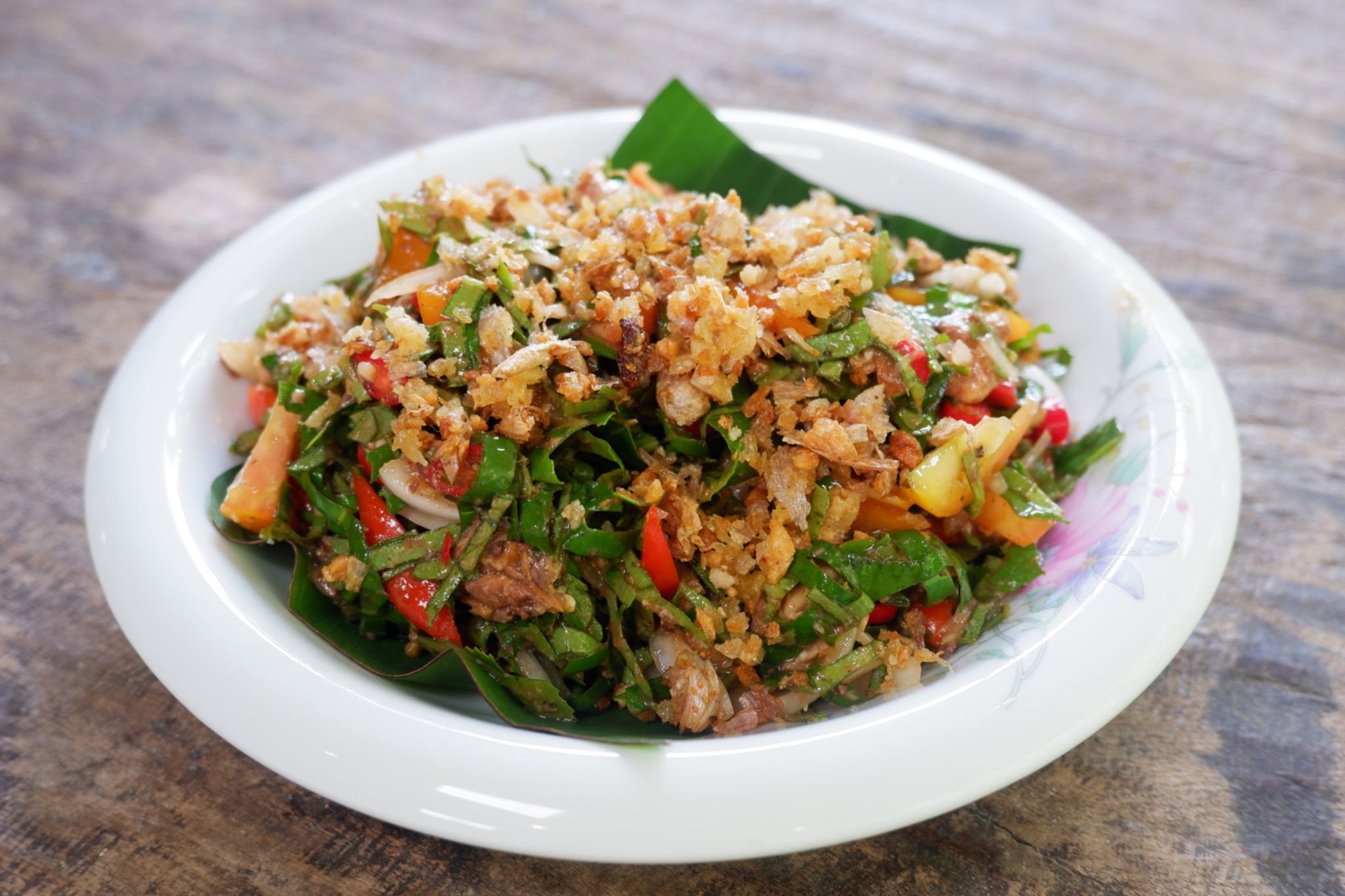 ช่วงเที่ยง พี่เจ้าของที่พักชวนพวกเราไปลองทำอาหารเหนือแบบพื้นบ้าน คือ “ยำใบเหมี้ยง” และ “หนอนใบชาทอด” เริ่มตั้งแต่การเตรียมวัตถุดิบต่าง ๆ จากนั้นก็ลงมือยำกันเอง ใช้ปลากระป๋อง พริก มะนาว หอมแดง รวมกับใบเหมี้ยง รสชาติจัดจ้านใช้ได้เลย! ถึงจะไม่เหมือนที่เคยกิน แต่แปลกใหม่และอร่อยไปอีกแบบ ส่วน “หนอนใบชา” ตอนแรกเรานึกว่าเป็นหนอนจริง ๆ แต่ไม่ใช่เลย! มันคือหมูเด้งปรุงรส พันกับใบเหมี้ยงแล้วเอาไปทอด กินตอนร้อน ๆ พร้อมกับจิ้มน้ำจิ้มไก่ หลังจากนั้นเราก็ล้อมวงกินข้าวกลางวันด้วยกัน ใช้เวลาไปเกือบชั่วโมงกว่า เป็นมื้อที่เต็มไปด้วยเสียงหัวเราะปนความเหนื่อยล้า