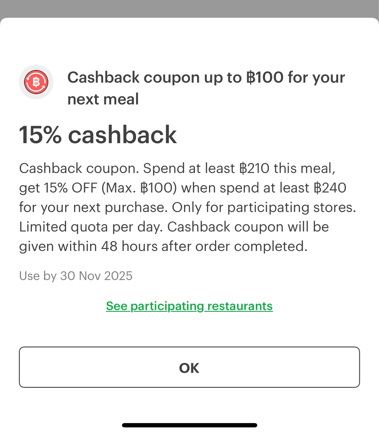 เพิ่งเคยสั่งอาหารผ่าน lineman ค่ะ มีให้เลือกตรง คูปอง ตัวเลือก cashback นี่คือยังไงหรอคะ