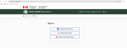 1.เข้าไปที่ เว็บไซต์ ของ Parks Canada แล้วก็หาตรงคำว่า Reservation คลิกไปเข้าไปเราก็จะเจอหน้านี้ ก่อนที่เราจะทำการจองตั๋วต่างๆของอุทยานได้เราต้องลงทะเบียนก่อน