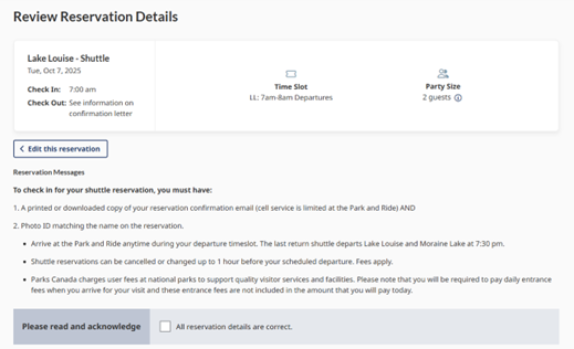 สมัคร Account สำหรับจองตั๋ว Shuttle bus ของ Parks Canada