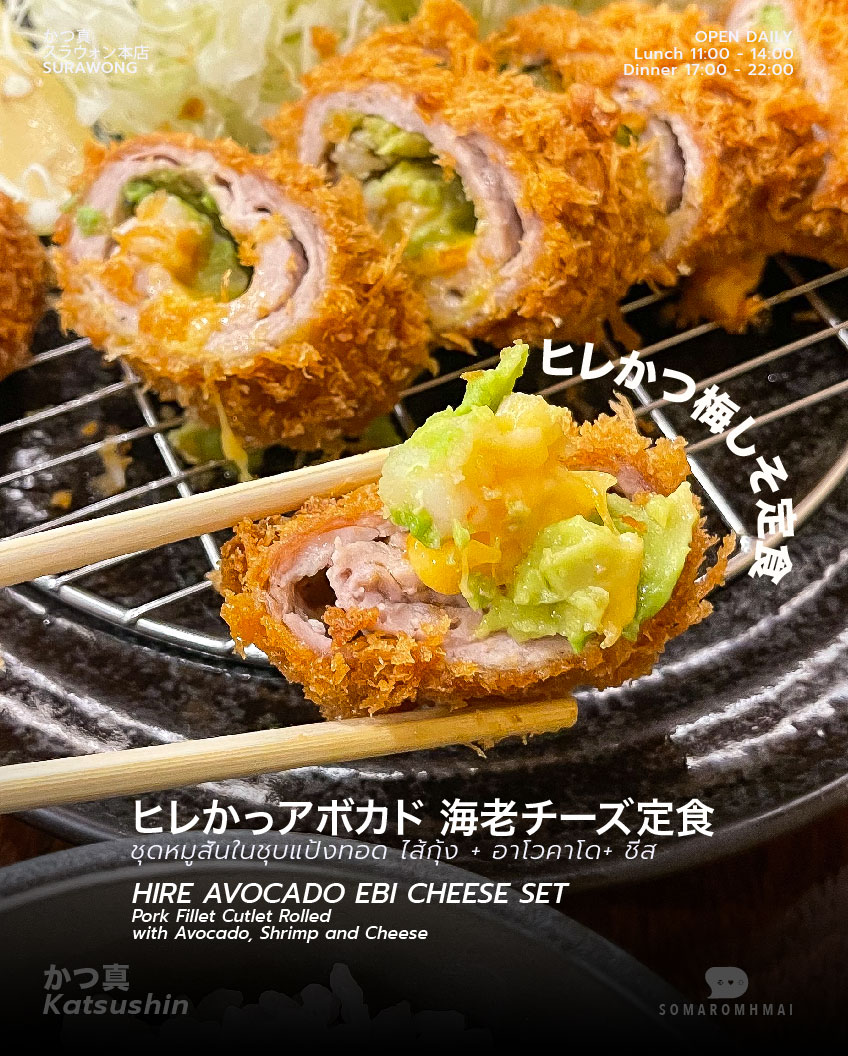 ชุดหมูสันในชุบแป้งทอดไส้กุ้ง + อาโวคาโด+ ชีส