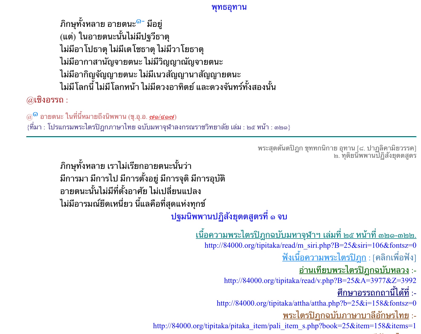 ปฐมนิพพานสูตร ดูก่อนภิกษุ อายตนะนั้นมีอยู่ หาอารมณ์ไม่ได้ (แสดงว่านิพพานไม่สูญแต่ไม่มีความรู้สึกอะไร)