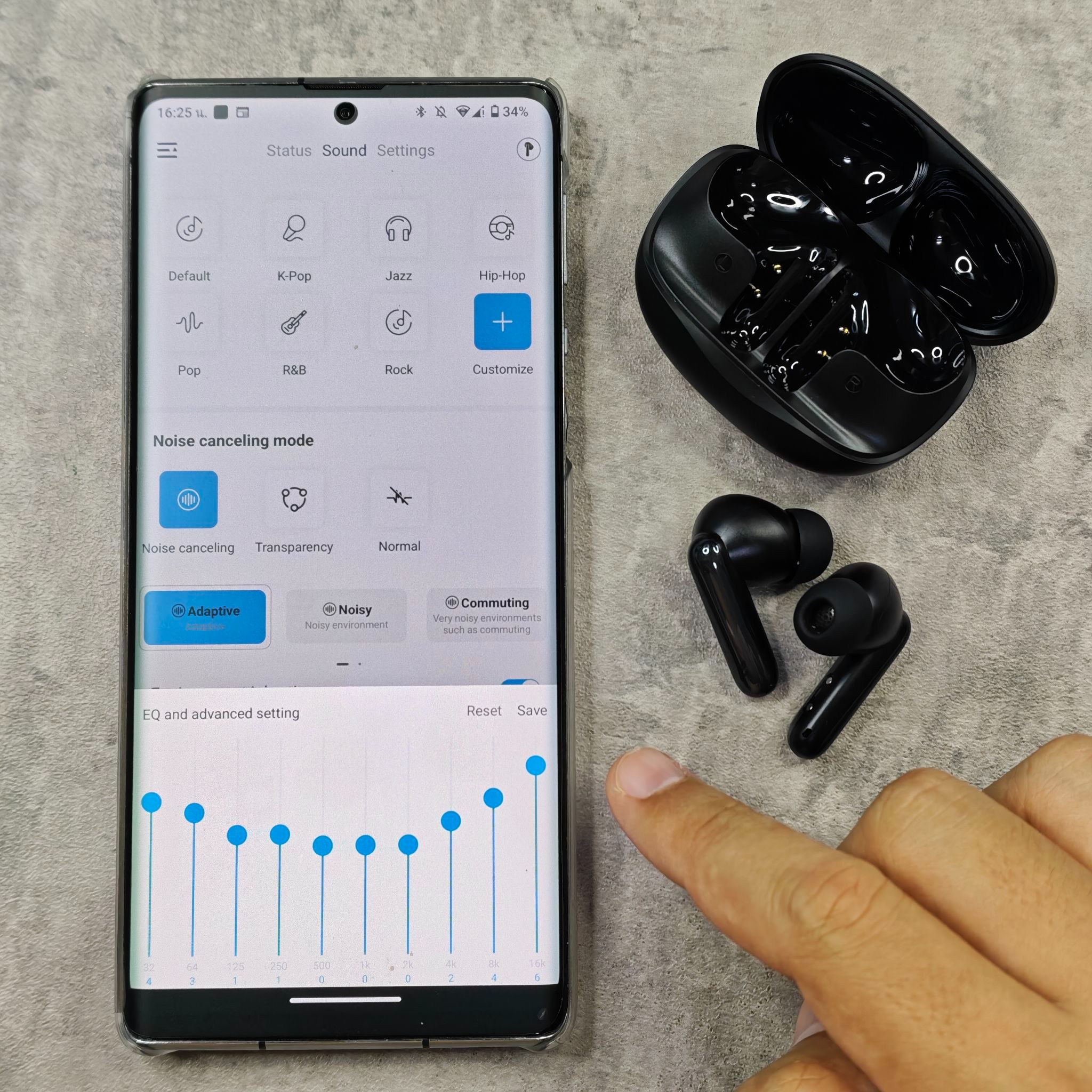 - เสียงเดิมจากโรงงานเลยจะเป็น เสียงเน้นเบสเป็นหลัก อันนี้คือเน้นจริงๆ นะ ถ้าได้ใส่เข้าไปในหูเต็ม มันจะเงียบแล้วเบสจะลูกใหญ่ ตามด้วยเสียงกลางที่ไม่แสบหู เสียงจากสแนร์ได้ยินฟังชัดเจนดี หรือเสียงนักร้องจะได้ยินชัดดีครับ ส่วนเสียงแหลม พอมีเบสหนักๆมา เสียงแหลมก็จะมีได้ยินอยู่ แต่ไม่ได้ซิกๆ แบบละเอียด แต่ถ้าจะเพิ่มเสียงแหลม ไปปรับ EQ ให้เกราฟด้านขวาดันขึ้นได้ครับ อันนี้คือข้อดีของปรับ EQ ได้ แต่สำหรับผมเสียงจากโรงงานก็เพียงพอแล้วครับ ฟังนานๆ ไม่แสบหูดี และอีกอย่างผมชอบเสียงเบสอยู่ละ 555