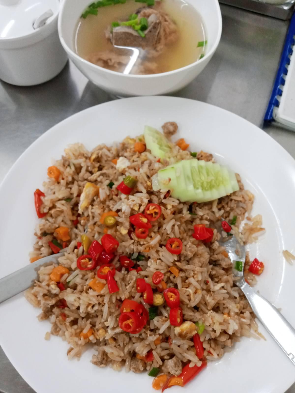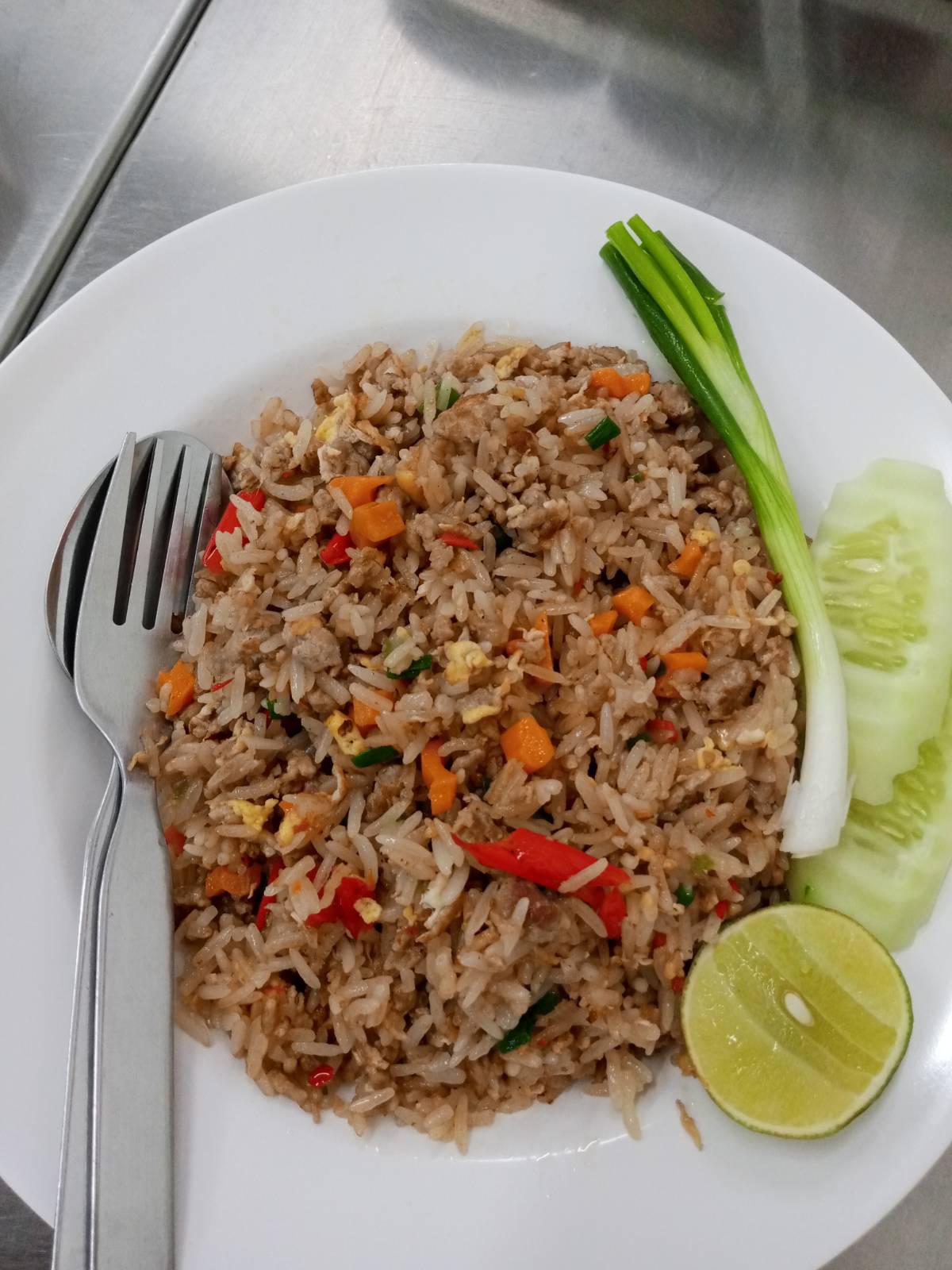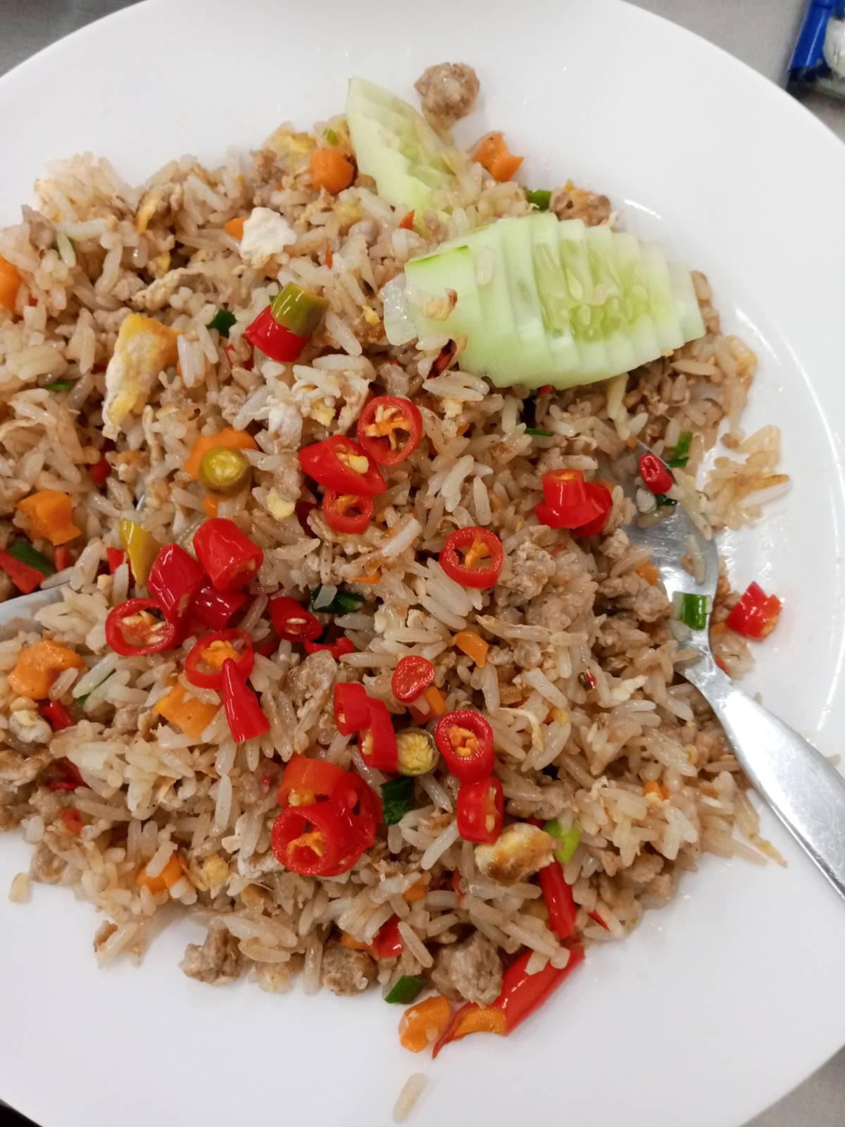 ข้าวผัดเผ็ดเนื้อ เผ็ดจริงจัง เผ็ดปากเบิร์น เนื้อผัดแบบขลุกขลิก สุกประมาณ 85% เลยยังมีความนุ่ม และ Juicy พริกน้ำปลา คือแจ่ม สดและกรอบ เพราะมาเป็นโต๊ะแรกเลย 555 เป็นผัดเนื้อที่จริงใจ เพราะเดี๋ยวนี้ไม
