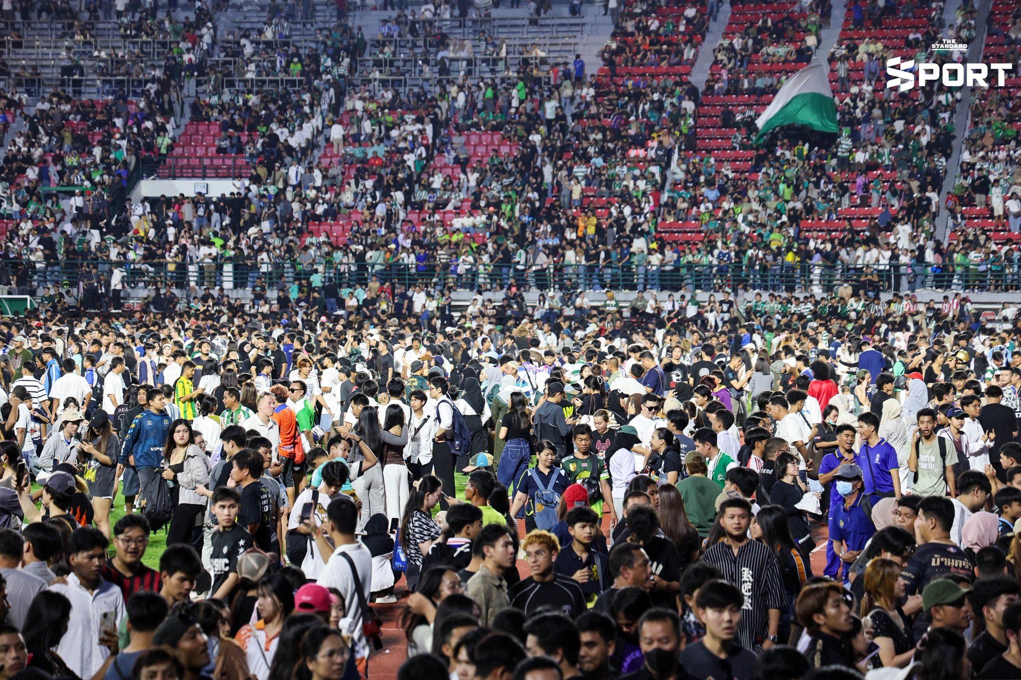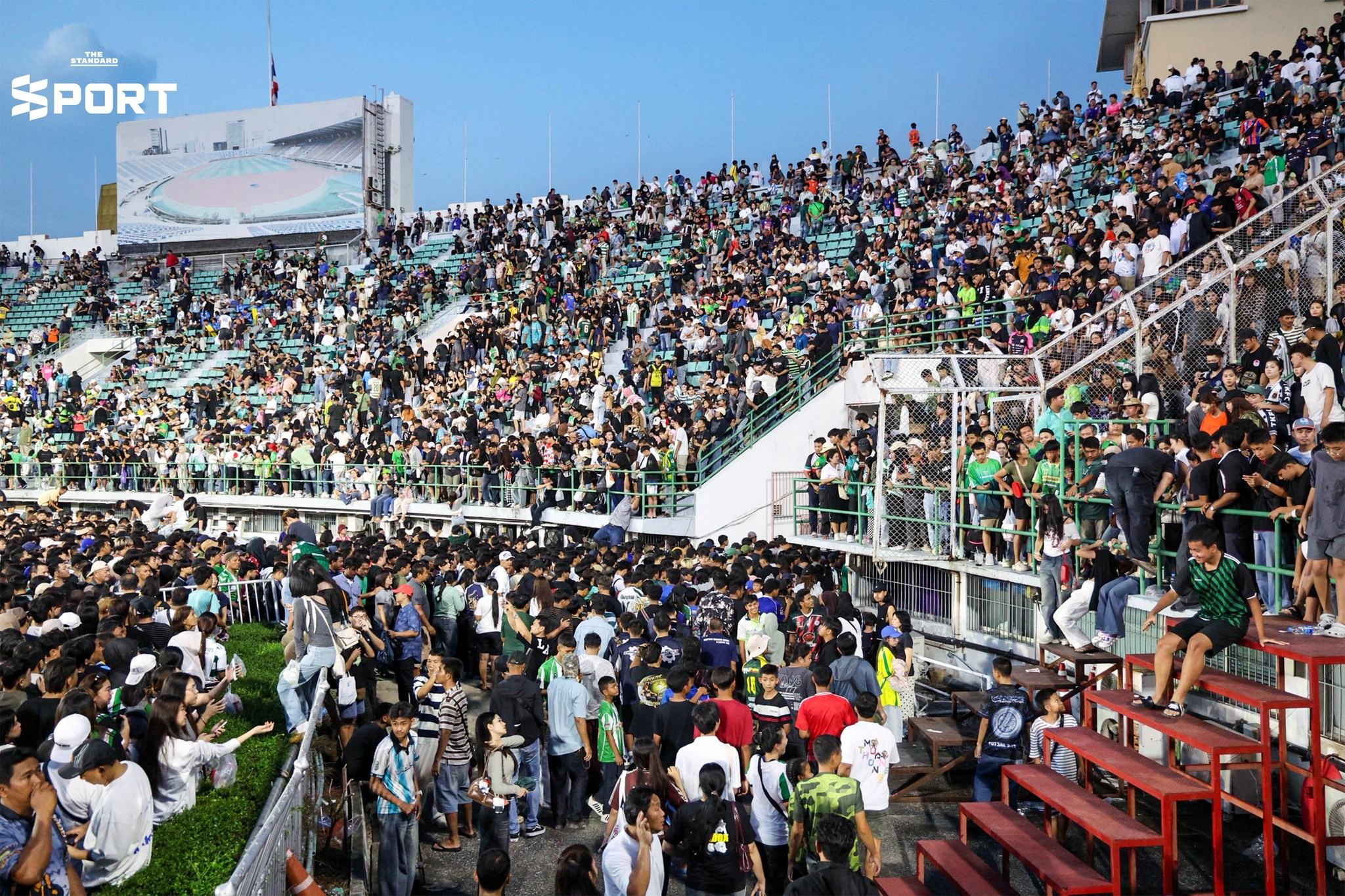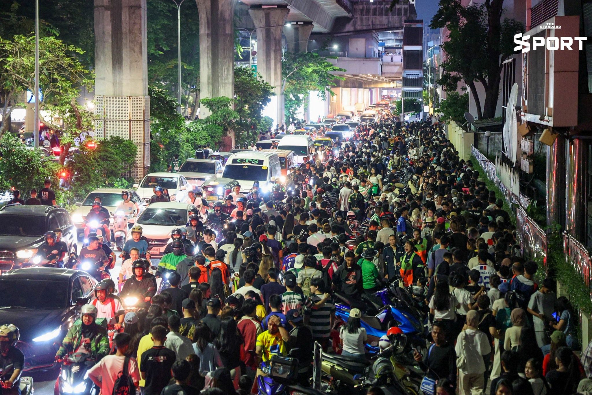 โดยเบื้องต้นคาดการณ์ว่า เกมวันนี้มีผู้ชมหลั่งไหลเข้าสนามราว 2-3 หมื่นคน จนแน่นทุกพื้นที่ทั้งในและรอบนอก หลังฝ่ายจัดเปิดให้ผู้ชมเข้ามาชมแบบ ติดขอบสนาม เพื่อรองรับกระแสแฟนบอลที่หลั่งไหลกันเข้ามาอย่างล้นหลาม