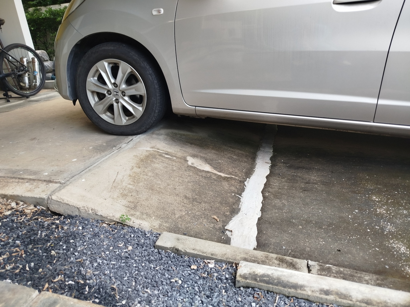 ทางลาดระหว่างตัวบ้านและถนน จะเทปูน หรือปูยางมะตอยดี