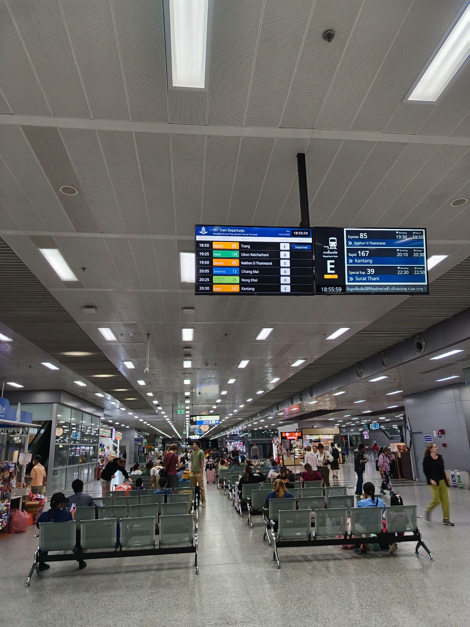 ในเมื่อจะเที่ยวฉบับ 'Low Price High Experience’ แล้ว การเดินทางไปต่างจังหวัดในราคาย่อมเยาก็ต้องเป็นการเดินทางด้วยรถไฟแน่นอน กลุ่มพวกเราจึงเลือกเดินทางรถไฟขบวน 39 สถานีกลางกรุงเทพอภิวัฒน์-สุราษฎร์ธานี ซึ่งเป็นรถไฟชั้น 2 ที่นั่งจะสามารถปรับได้ โดยพวกเราจะขึ้นรถไฟที่สถานีกลางกรุงเทพอภิวัฒน์ และลงที่สถานีชุมพร เวลา 22.50 - 5.22 น. ราคาอยู่ที่คนละ 429 บาท โดยพวกเรานัดกันเวลา 21.30 น. ที่บริเวณประตู 4 ของสถานีกลางกรุงเทพอภิวัฒน์ ซึ่งเป็นจุดรอขึ้นรถไฟสายใต้ ที่ทางขึ้นชานชาลา E นั่นเอง เพื่อตรวจสอบความพร้อมของแต่ละคน ก่อนจะเริ่มขึ้นรถไฟเวลา 22.30 น. (ทางสถานีจะเรียกให้ขึ้นรถไฟก่อนเวลาออก 20 นาที อย่าลืมเผื่อเวลากันด้วยครับ) นี่ถือเป็นครั้งแรกของพวกเราทุกคนในกลุ่มที่ขึ้นรถไฟสายใต้ด้วยครับ