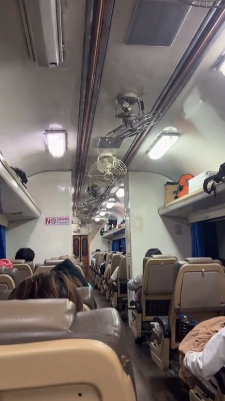 เนื่องจากพวกเราได้ที่นั่งกันคนละตู้ จึงต้องแยกย้ายกันไปประจำที่นั่ง เมื่อขึ้นไปแล้ว ทุกที่นั่งจะมี ผ้าห่ม วางเตรียมไว้ให้ สามารถหยิบใช้ได้เลย (แต่เจ้าหน้าที่จะมาเก็บผ้าห่มก่อนถึงสถานีที่เราลง ถือเป็นการปลุกเราก่อนถึงสถานีและเตรียมความพร้อมก่อนลงสถานีชุมพรนะครับ)