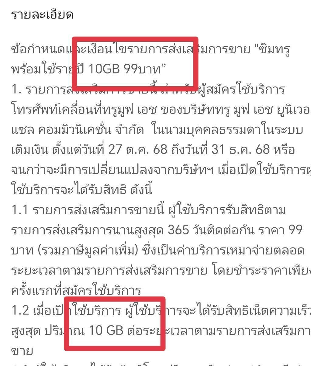 ในรูปเขียน 99GB 99บาท ความจริงคือ 10GB 99 บาท