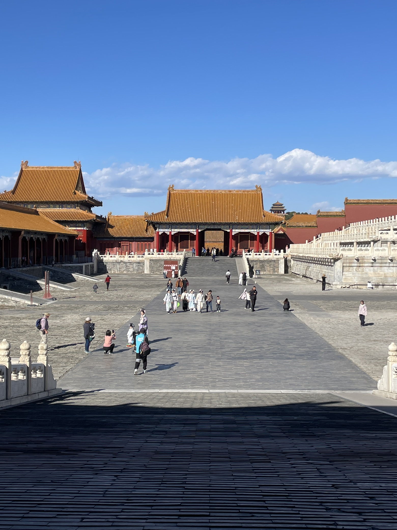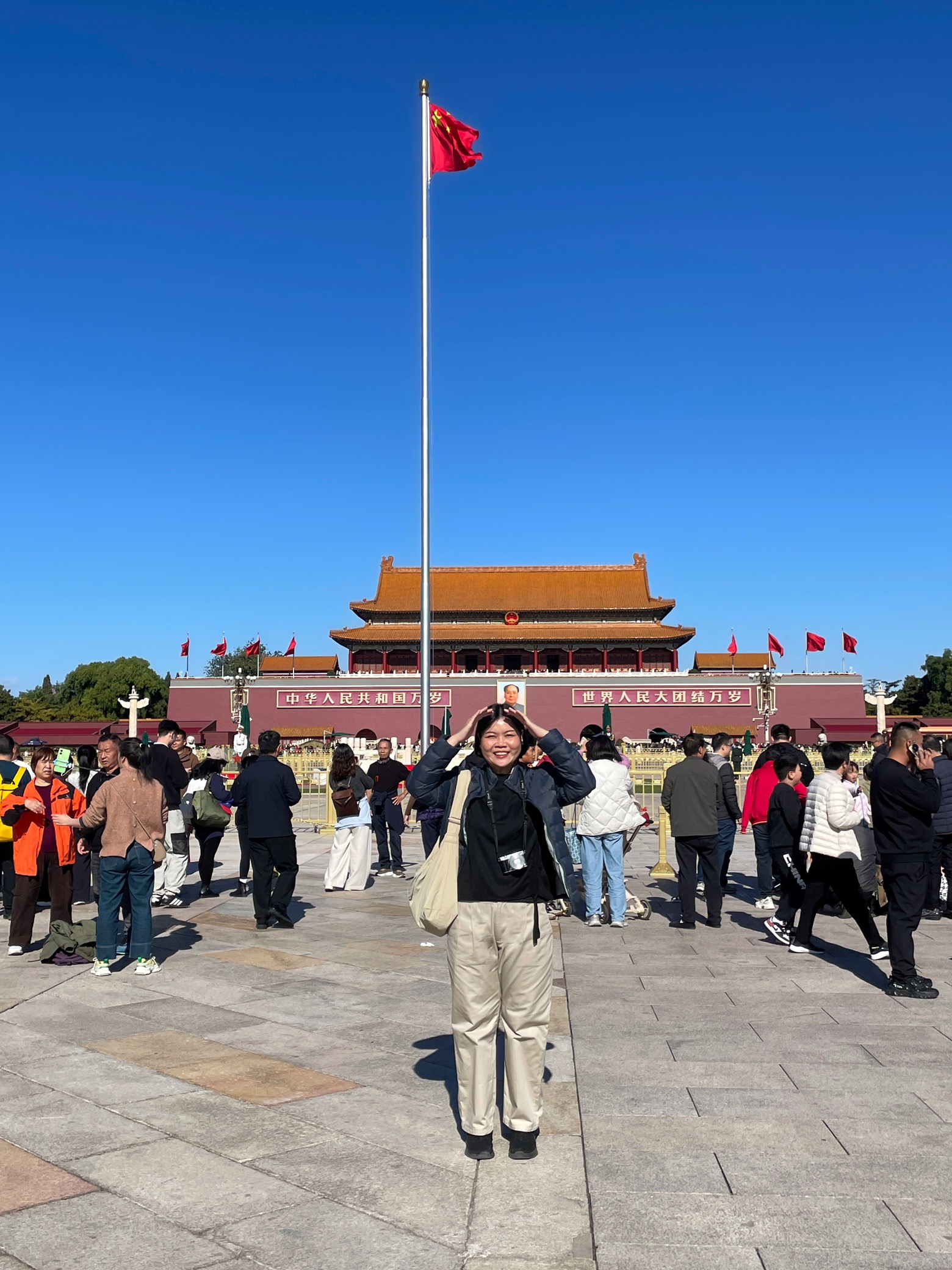 จตุรัสเทียนอันเหมิน (ต้องจองคิวล่วงหน้า 1 วัน ผ่านวีแชท ตอนเข้าคนเยอะมาก แถวยาวมาก แต่รันค่อนข้างเร็ว มีด่านตรวจค้นเข้มมากพอกับสนามบิน ป้าเราพกยาความดัน เจ้าหน้าที่ชี้ๆ ถามประมาณว่ายาอะไร ป้าเราชี้คำกำกับภาษาอังกฤษ เค้าทำหน้างง ต้องทำท่าปวดหัว เค้าเลยให้ผ่าน)