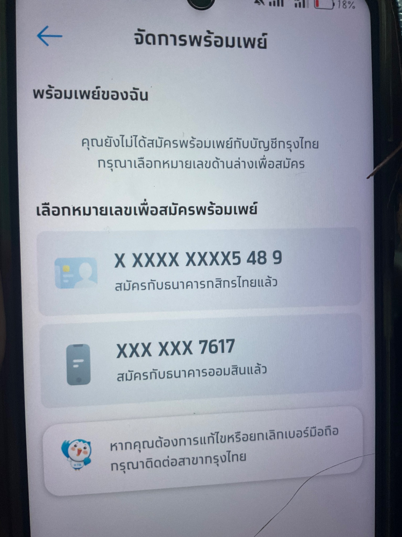 สมัครพร้อมเพย์กรุงไทยไม่ได้ ทำยังคะ