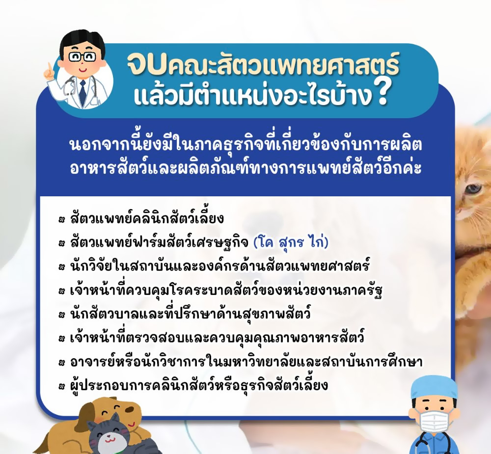 สรุปคือ เรียนจบสัตวแพทย์ = เปิดประตูสู่อาชีพที่หลากหลาย ทั้งมั่นคงและได้ทำสิ่งที่รัก