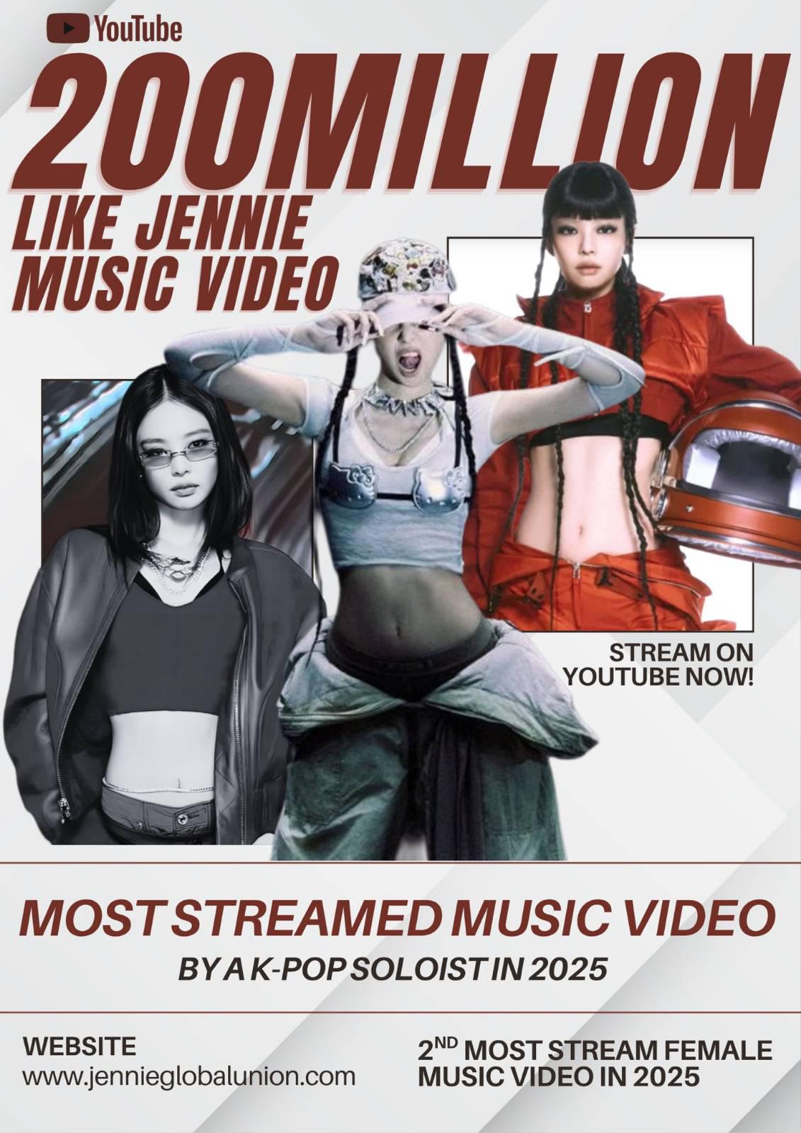 “Like JENNIE” มียอดวิวบน YouTube ทะลุ 200 ล้านครั้ง มิวสิควิดีโอจากศิลปินเดี่ยว K-POP ที่มียอดวิวสูงที่สุดในปีนี้ 🎉