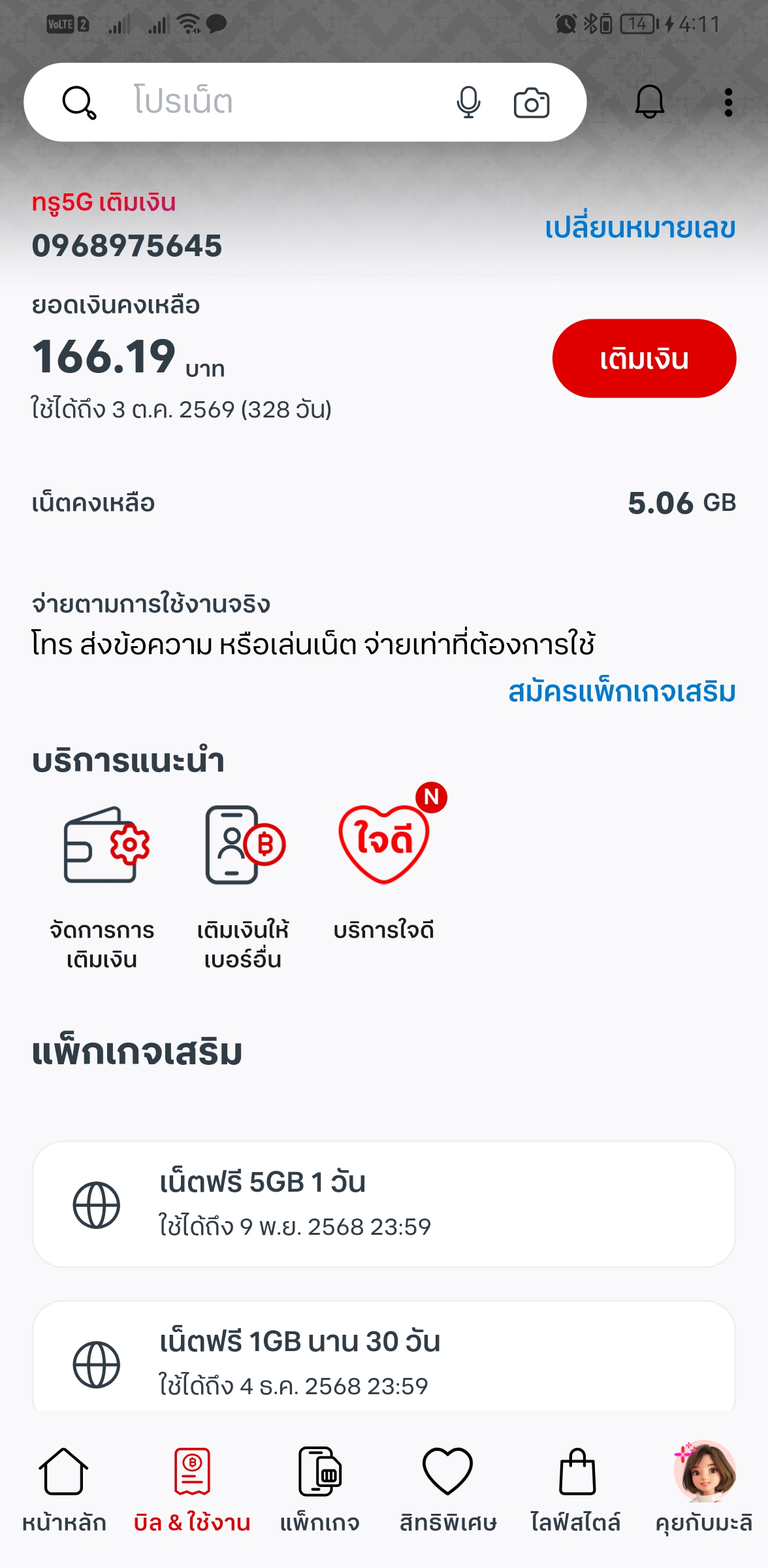 จะสมัครแพ็กเกจเสริมเน็ตทรูในแอป True i service แต่ไปเติมเงินแล้วมาสมัครไม่เจอ